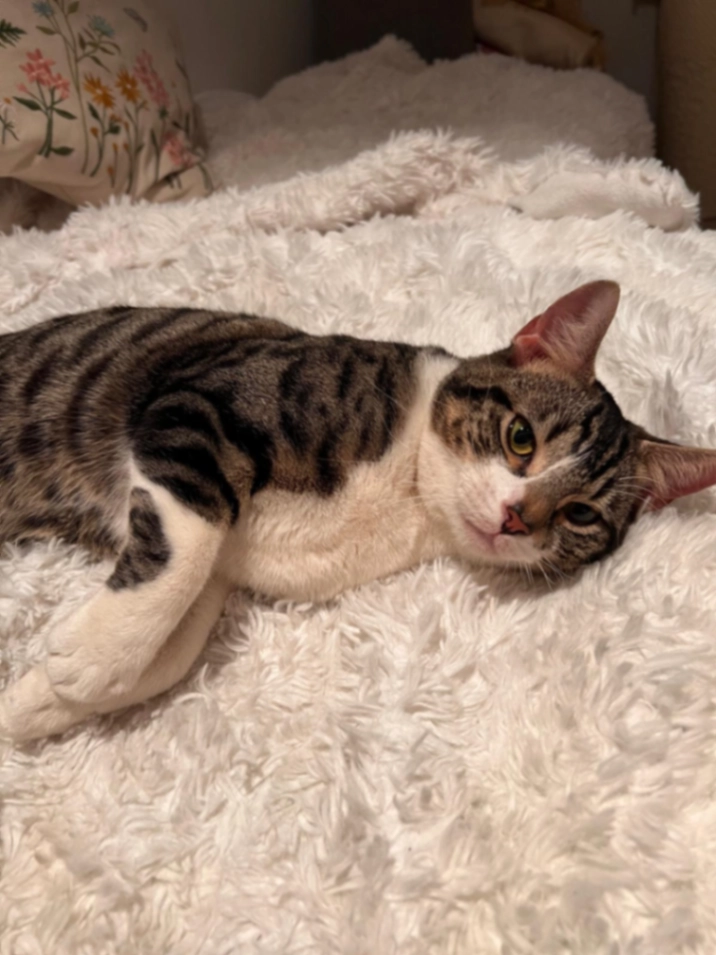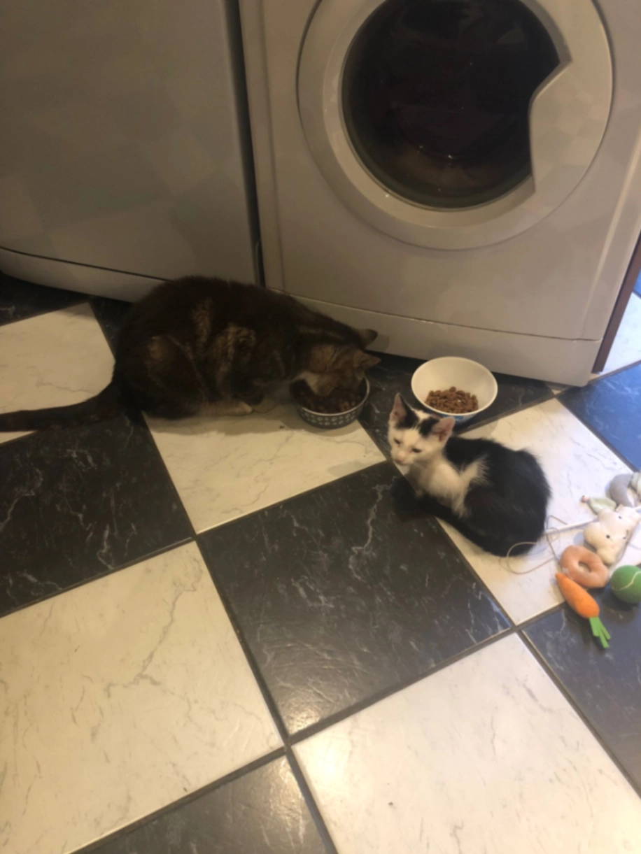 He’s been chipped and is around 10 months old he was last seen on 14/03/26 around 7-8pm he is mostly white with black patches over him him too.