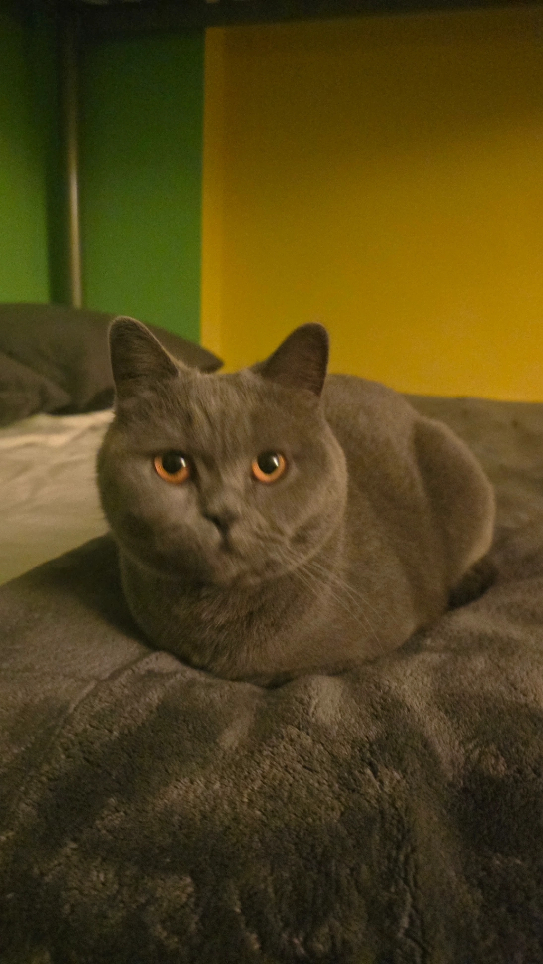 Gismo is dark grey with a white tummy. He is a very small cat