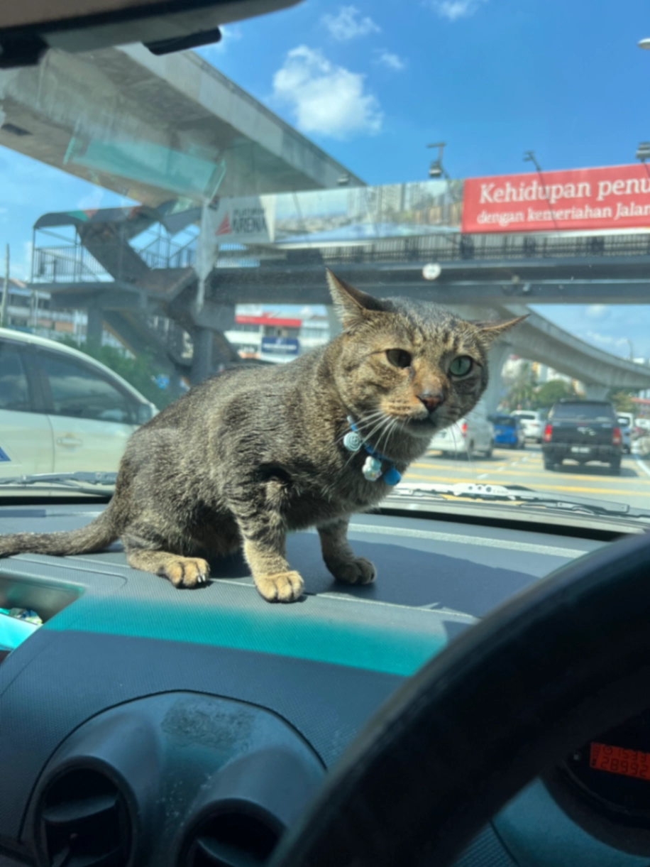 Taman Midah, Orange female cat with green eyes, has a pink tag on her neck