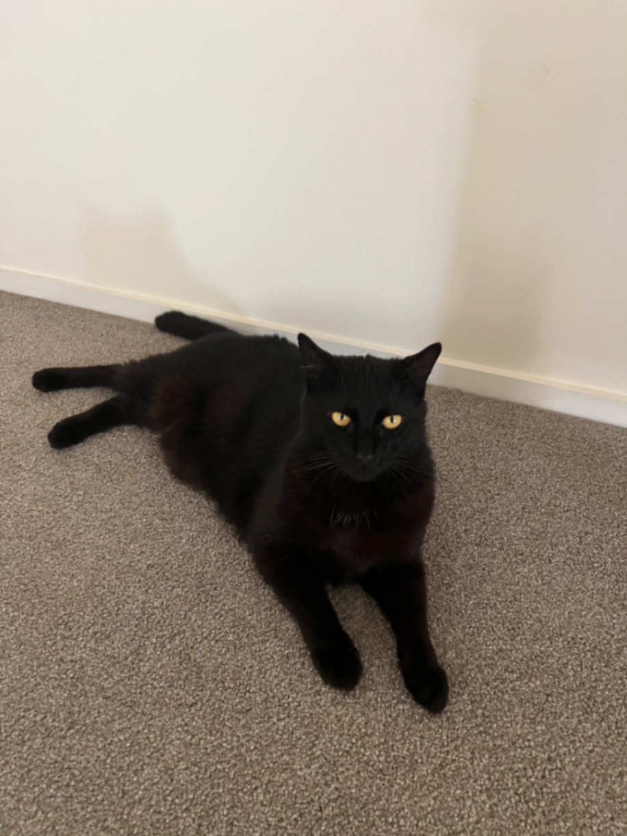He has Fluffy Medium/long Hair. Bright Yellow/Orange Eyes and should have a blue collar on. He is friendly but may be scared and hiding. He is Male and microchipped. It is very unusual for him not to come home. he is normally already waiting morning and night for food or comes straight away when I call him