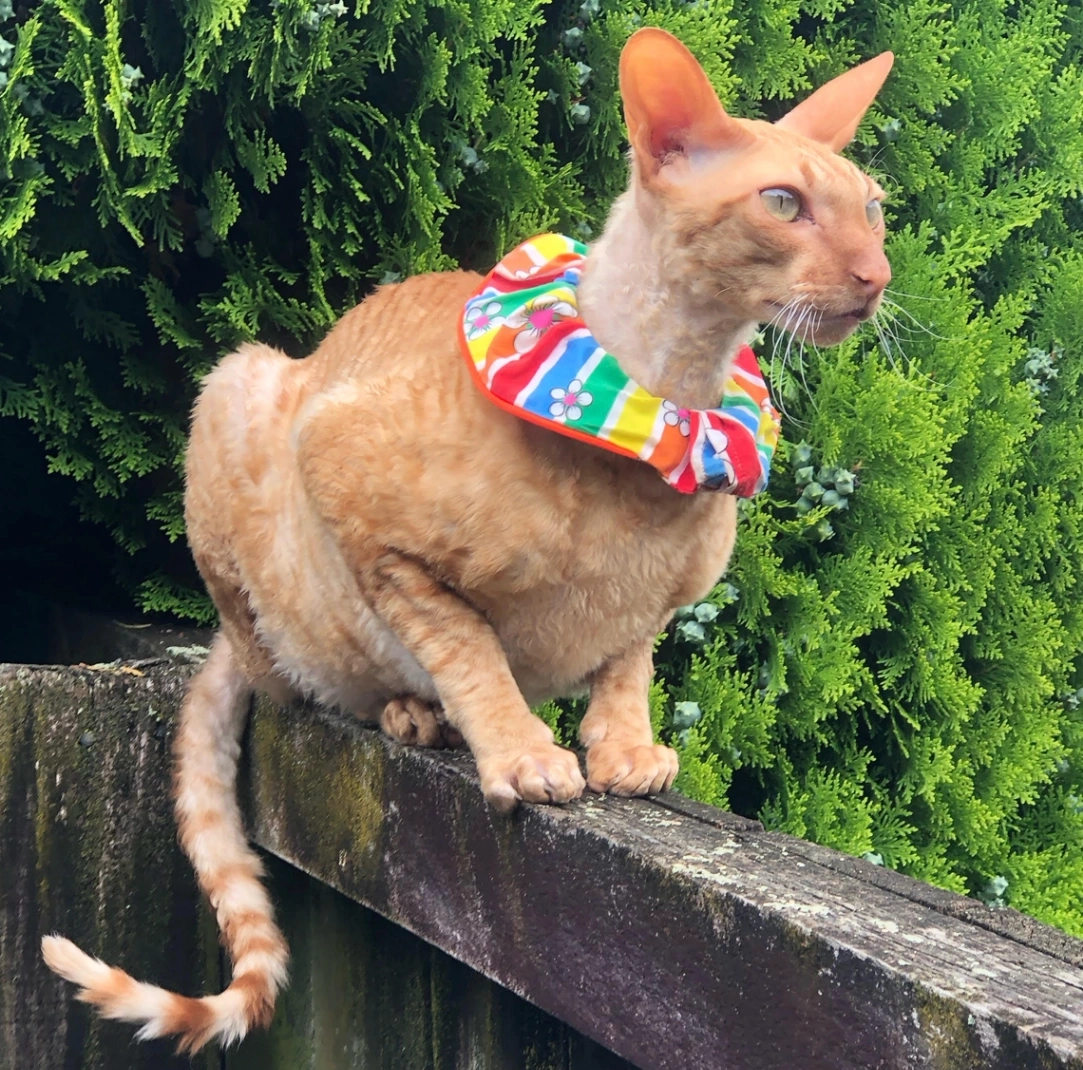He was wearing a rainbow anti-bird collar, but it may have fallen off.