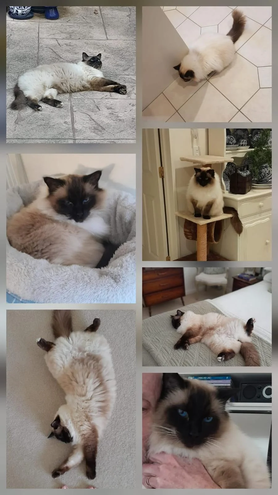 Male Birman Ragdoll. Cream with brown face, paws and tail