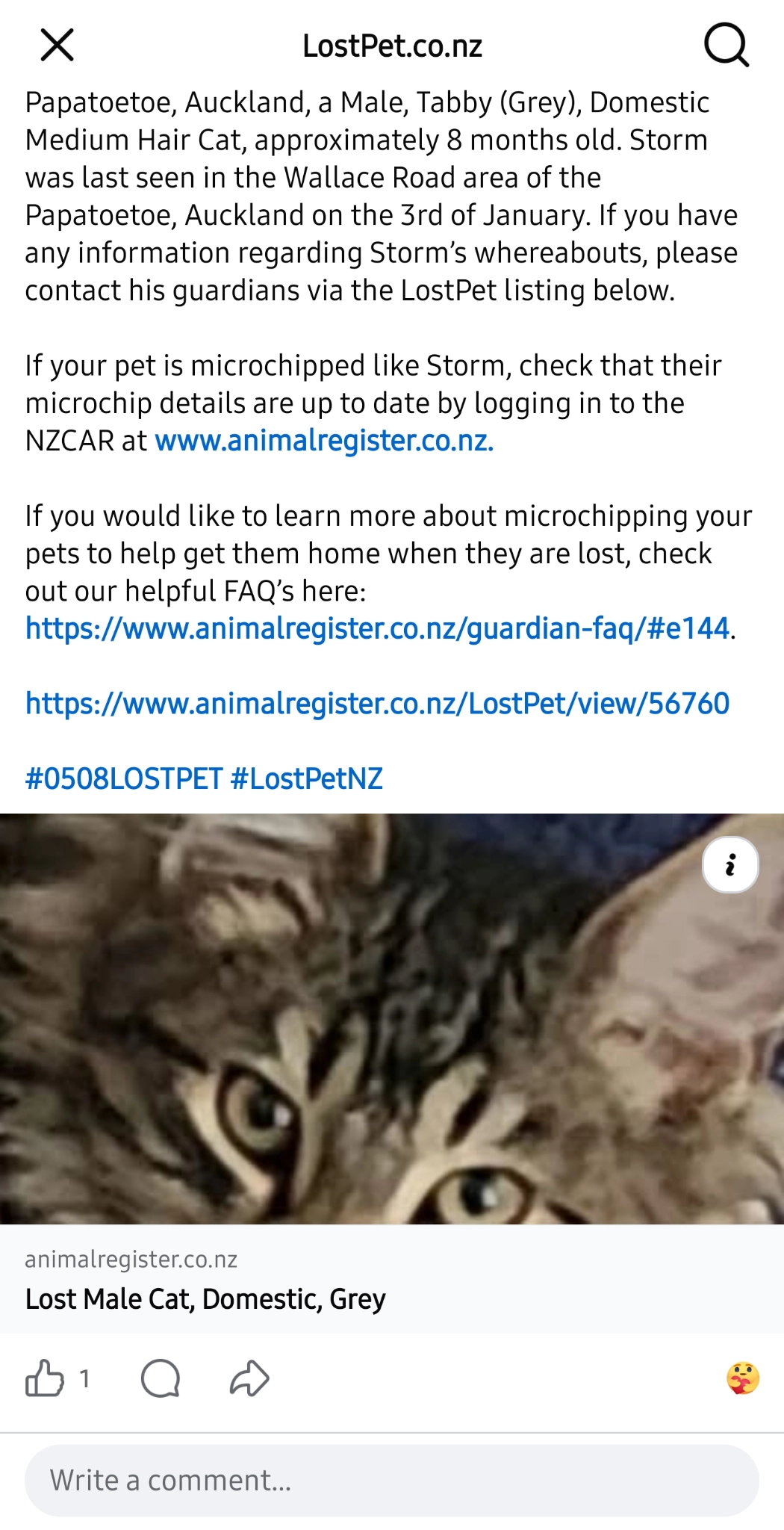 Have you seen Storm? Please help us by checking your garage, attic, shed, and outdoor spaces.