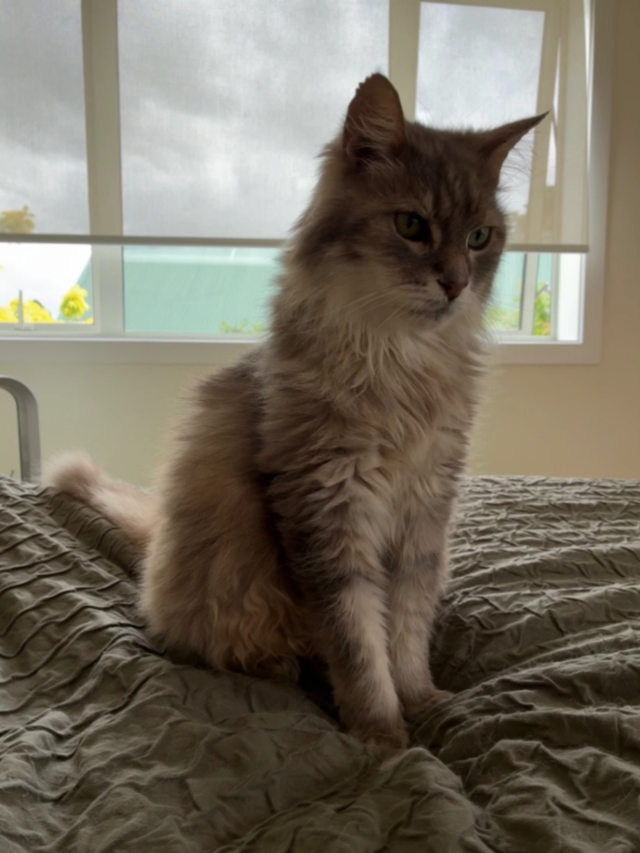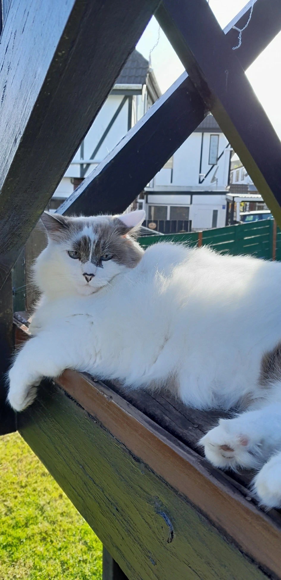 Big and fluffy Persian/Ragdoll cat. Very shy and scared of loud noises. Please check your sheds and garages.