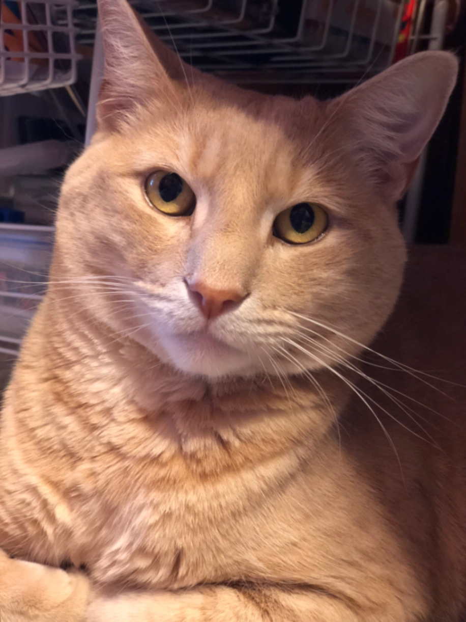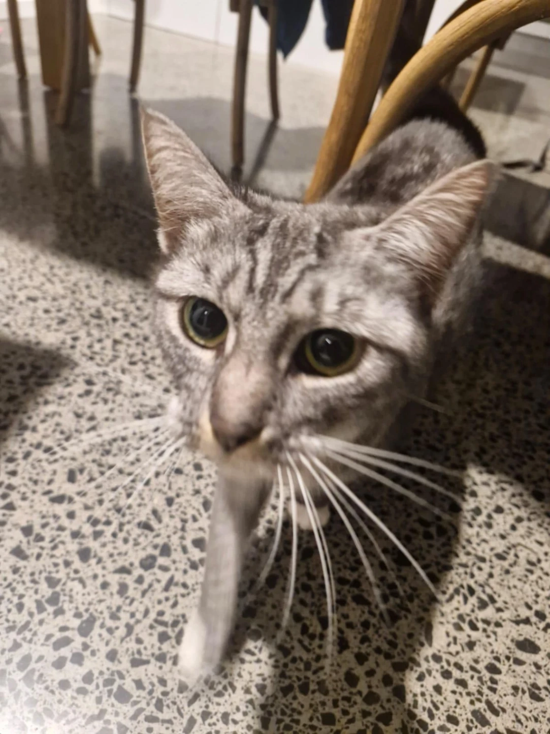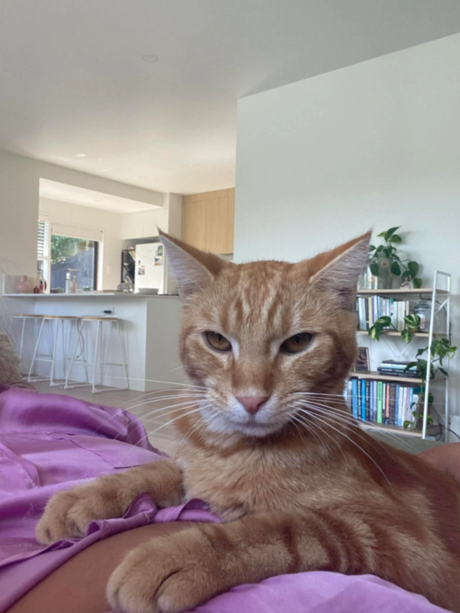 Herbert is an old and gentle cat with a saggy tummy and missing teeth, his meow sounds like heeellloooo