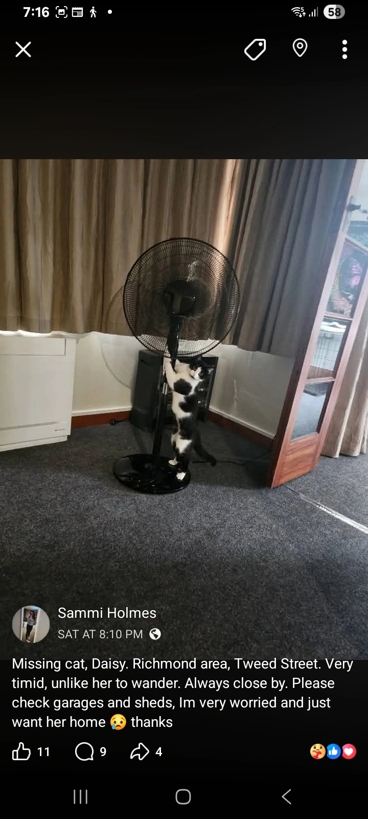 Sass is a 7 year old girl who we only just got and managed to escape out of a window. She is a shy cat - any help would be appreciated