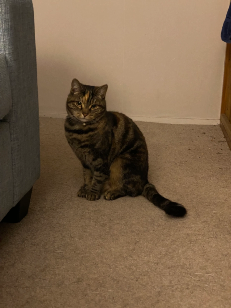 Molly is a small, shy but friendly tabby. We’re new to Christchurch so she is unfamiliar with the area we’re living in. She is likely to be afraid and unsure how to get home. She’s wearing a pink collar.