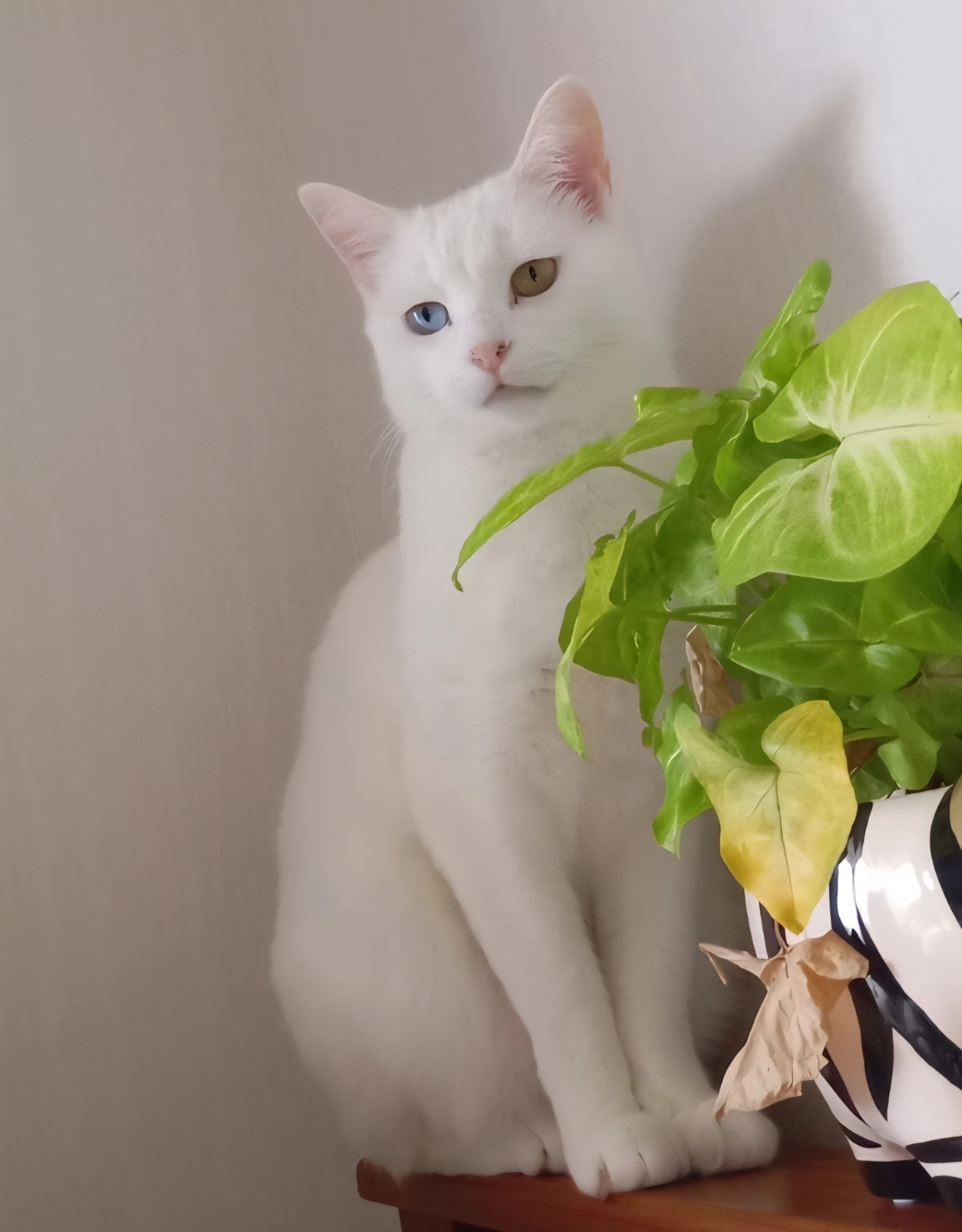 Snow is small and all white with one blue eye and one green. She is shy but friendly.