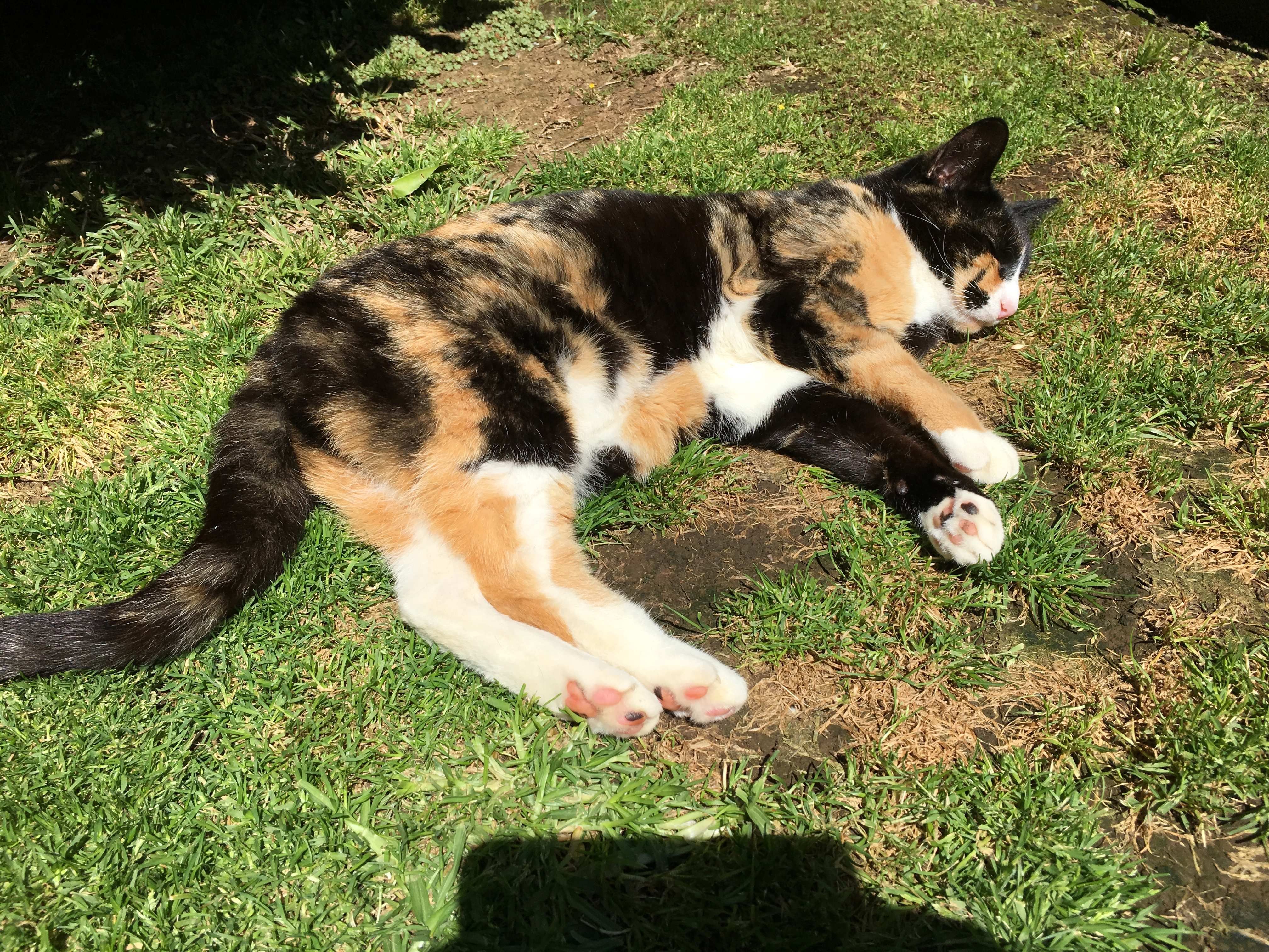 Pretty Tortoiseshell and White female. Timid but likes treats.