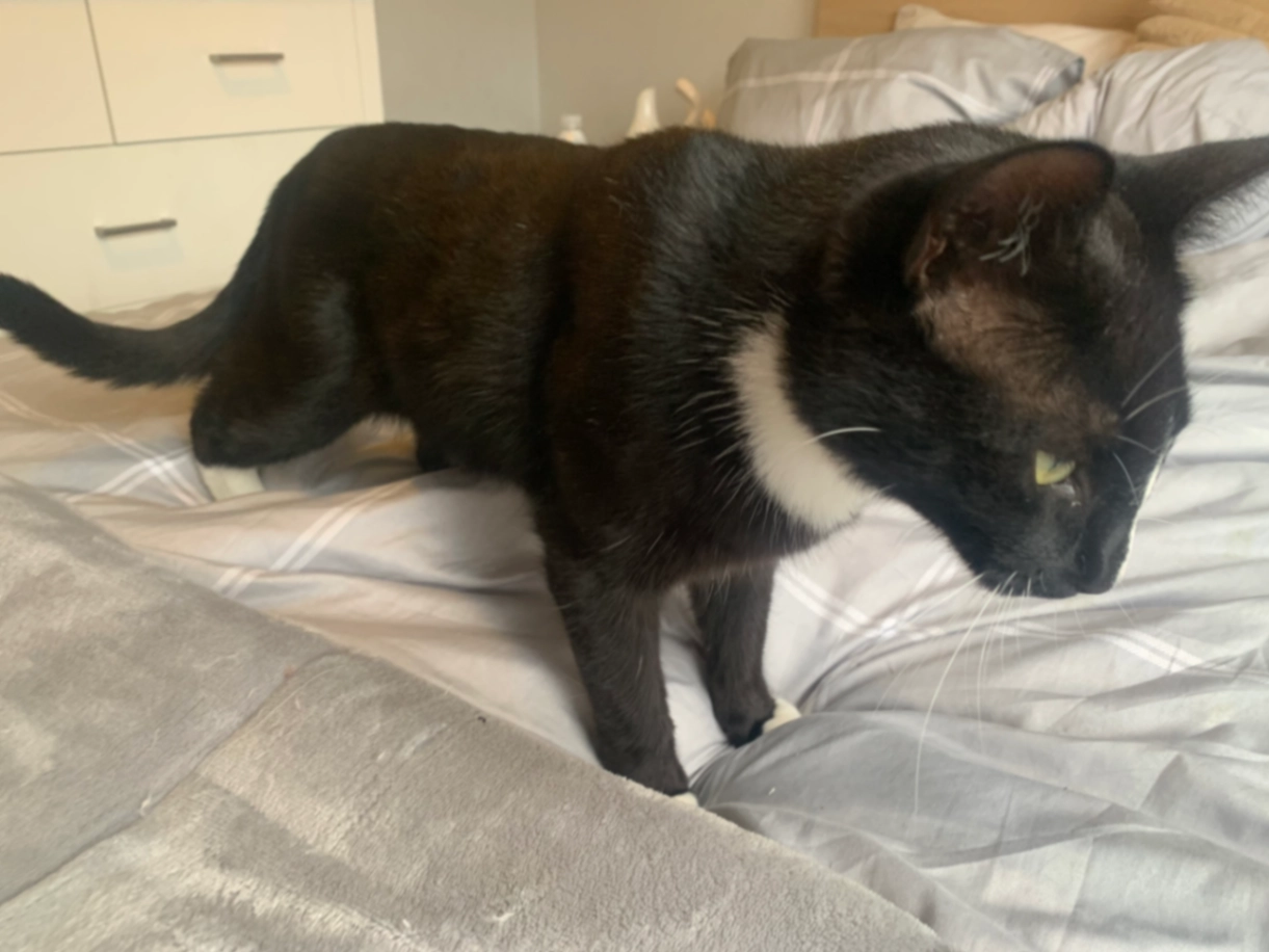 Hello my cat Timmy has gone missing he is a black and white short haired cat he has white fur on his nose and feet and belly and the rest of his fur is black he has yellow eyes and a black nose he is 2 years old with us until he went missing