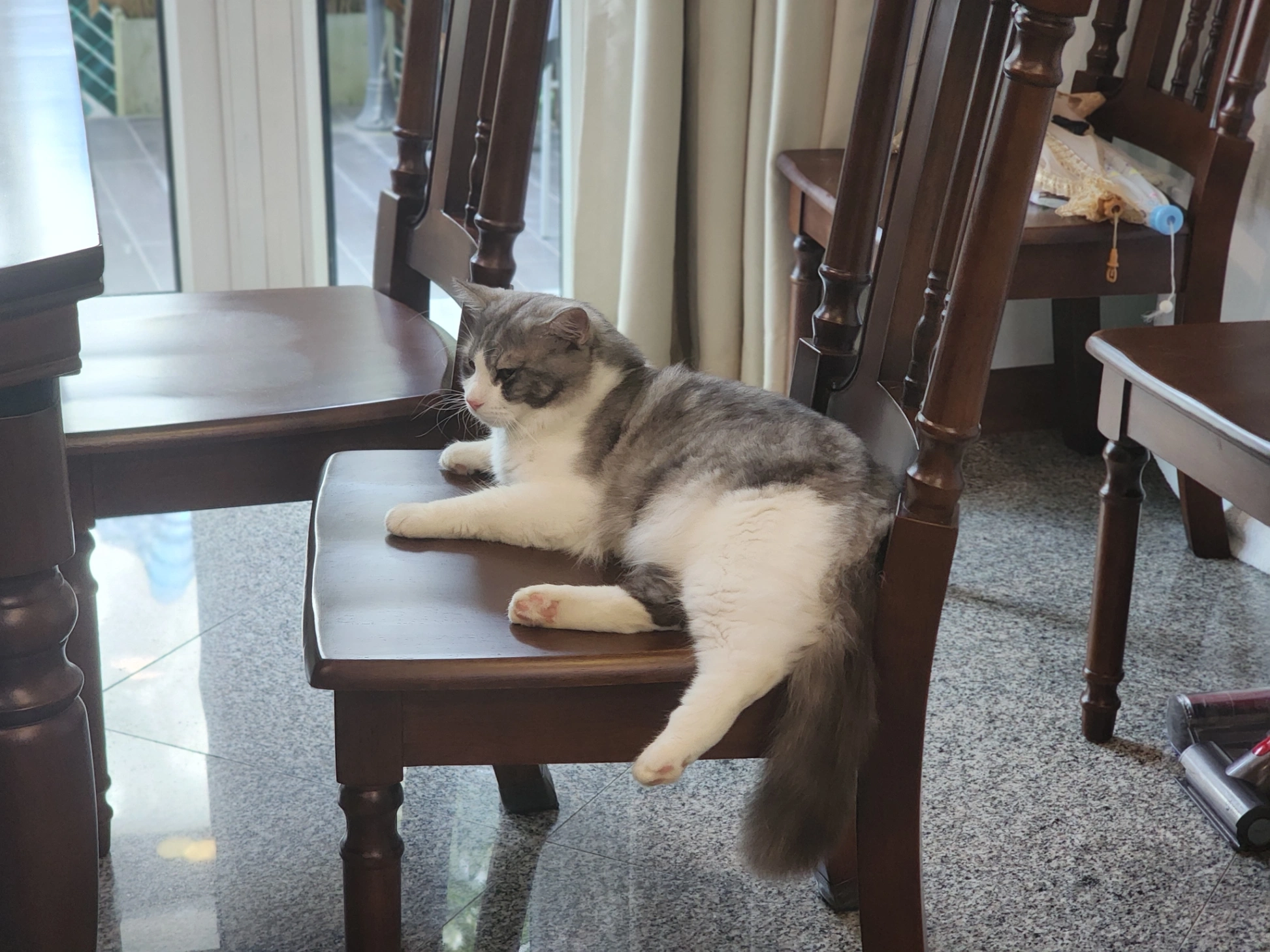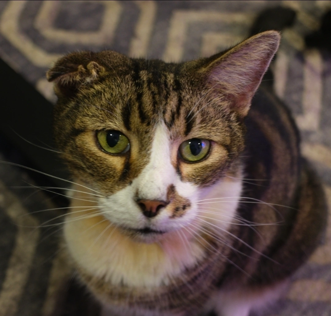 Napoleon is a domestic short haired with 1 folded ear.