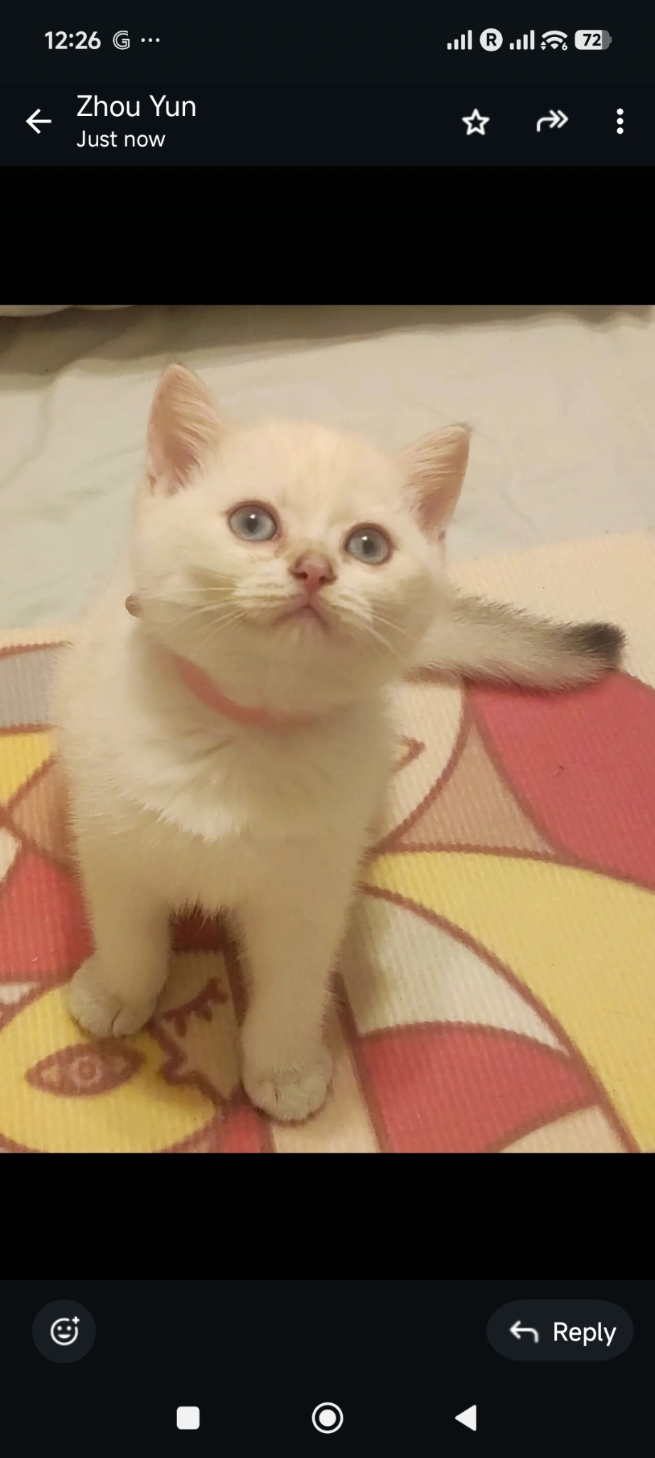 It is a British shorthair white cat (2 months old), just newly adopted. She was lost on 30th Jan