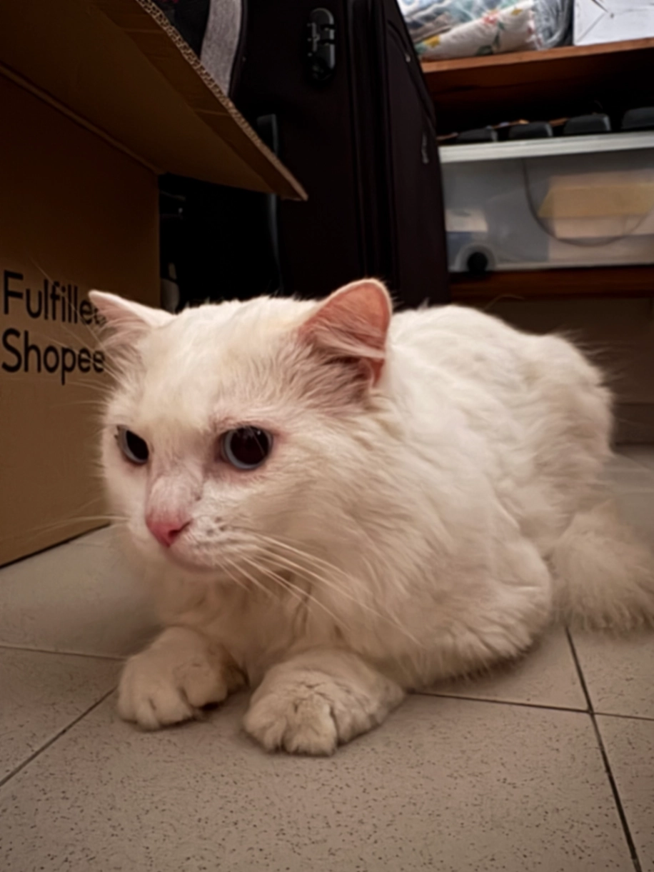 Found this cutie sitting on the pavement, does not look like a stray, was really frightened and hungry.