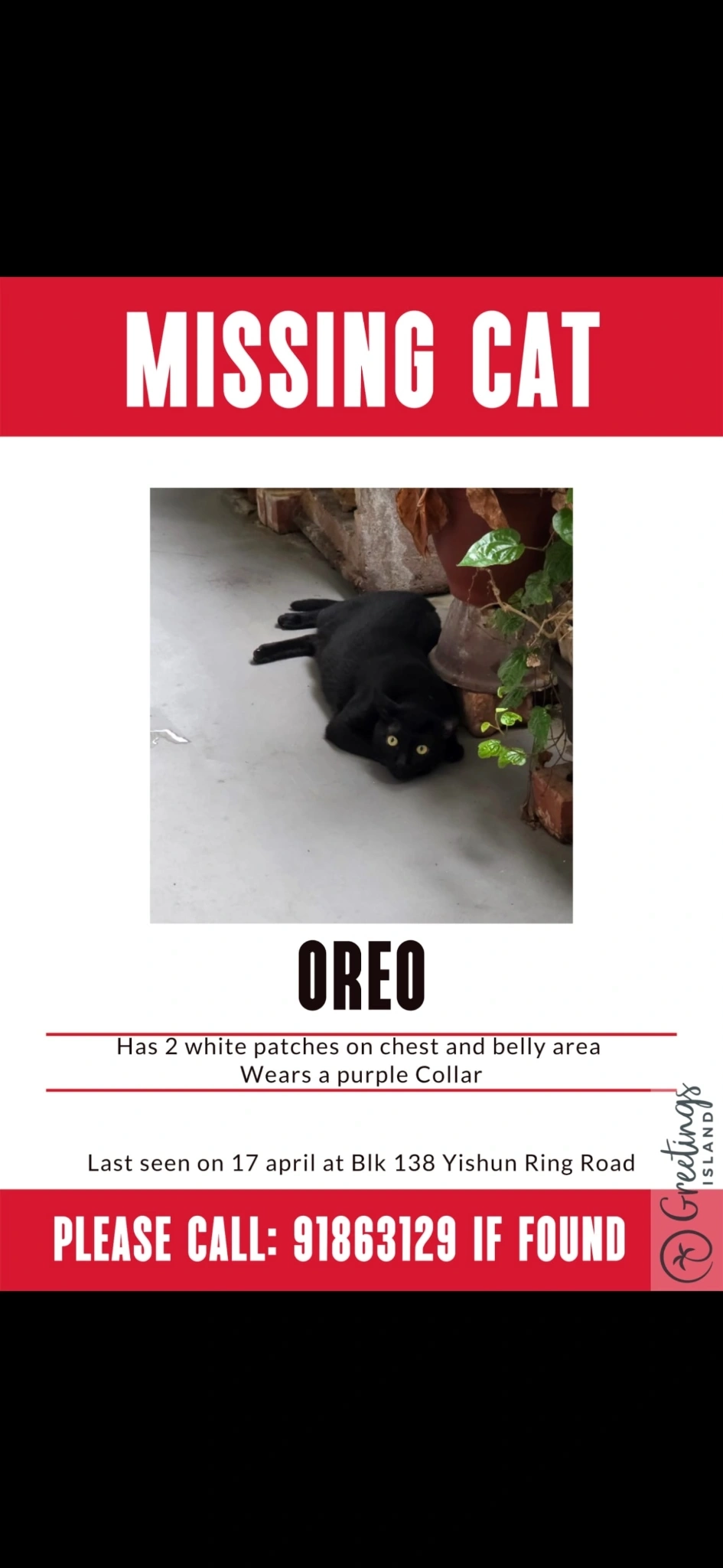 Any info, no matter how small, could help bring our beloved Oreo home!