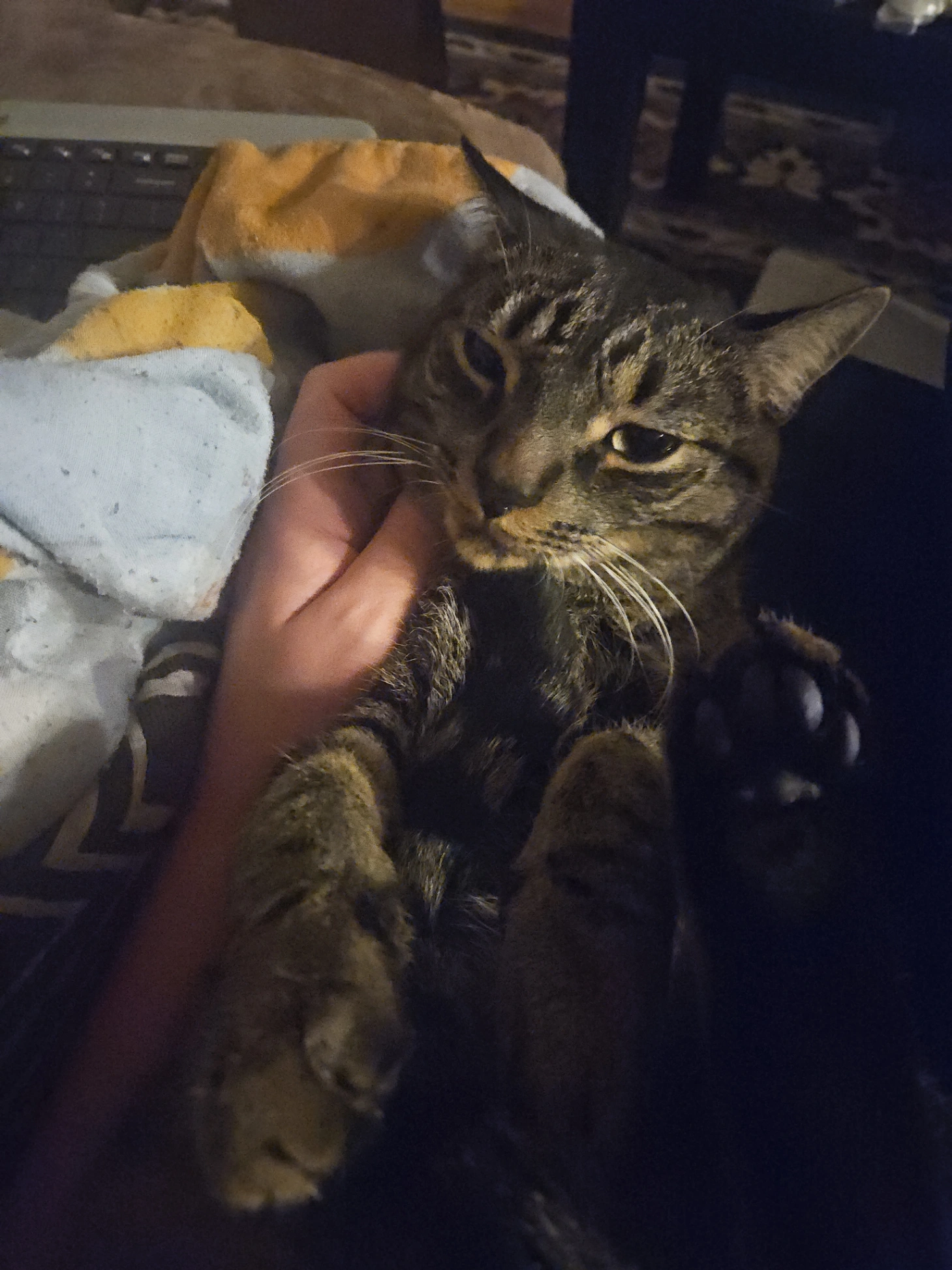 Her name is Missy - black cat - green eyes - about 12 or so lbs - she is a hemmingway so has extra toes on each paw.