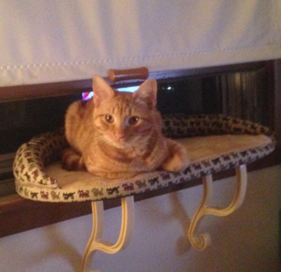 1 year old orange boy cat. He’s very playful and easy to hold. He wasn’t wearing his collar and is not neutered. He also has a brother named Loki from whom he’s separated right now.