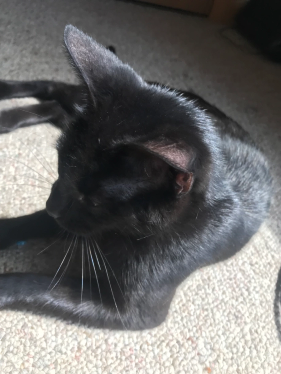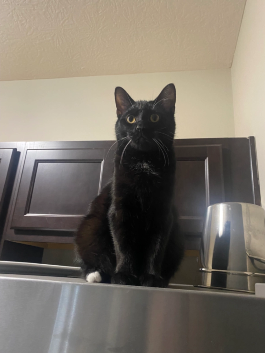 Milo is 8 months old he is still a kitten but on the bigger side he isn’t fixed. He is afraid of strangers but very food motivated if you have food he will come! He is very friendly if you see him please grab him up and contact me
