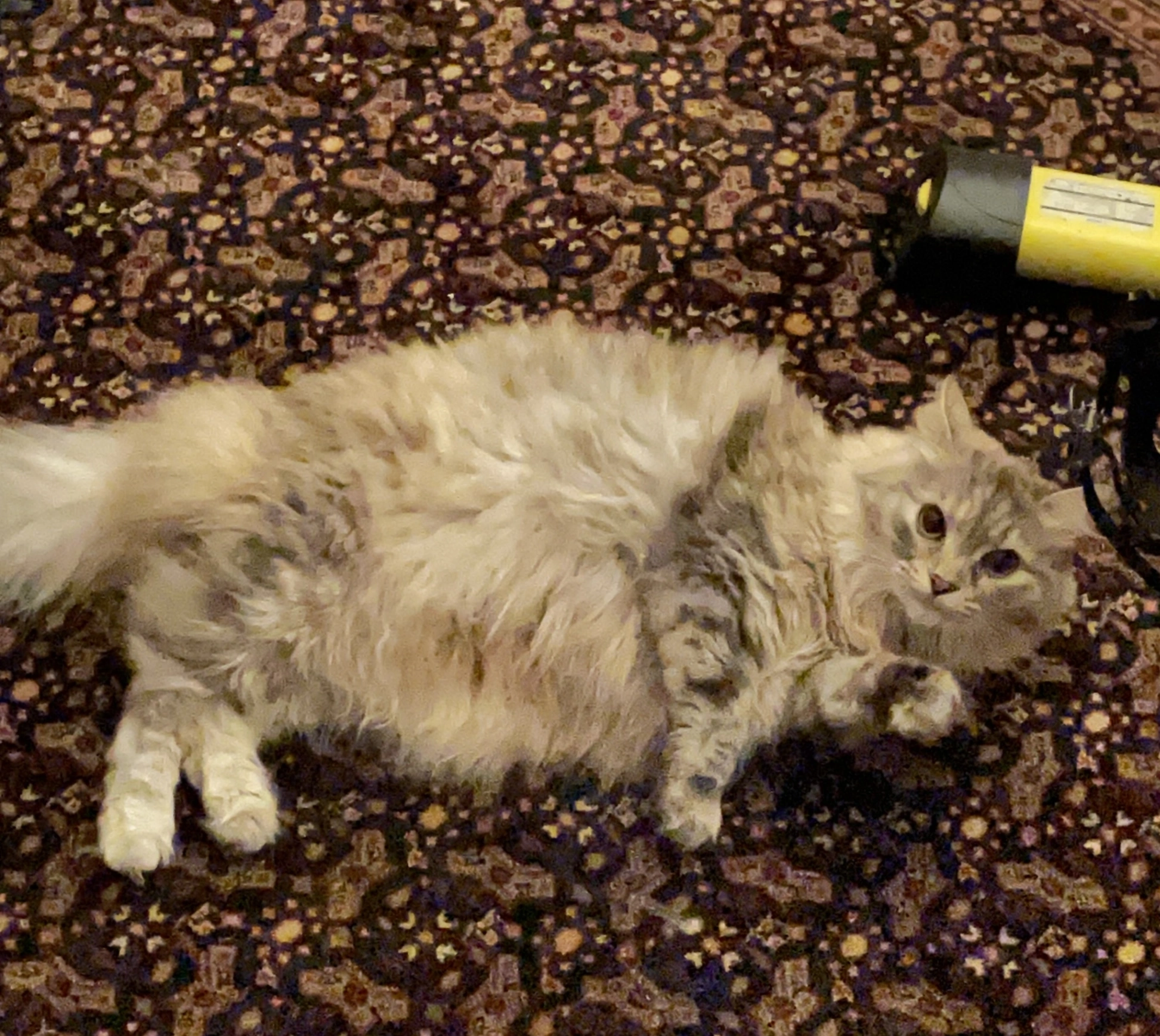 Matilda is a long haired cat and weighs approximately 9 lbs. Her fur is grey, white with orange highlights. She is very sweet but and indoor cat so she may frighten easily. Last seen 2/15/2026. Its been raining and cold so she may have taken shelter in a dry place in your backyard. Any information would be helpful.