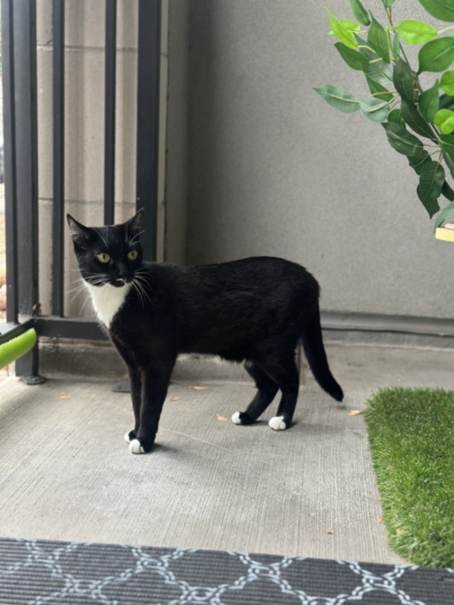 Dharma is my beautiful tuxedo baby. She’s small at only 7 lbs, and very skittish.
