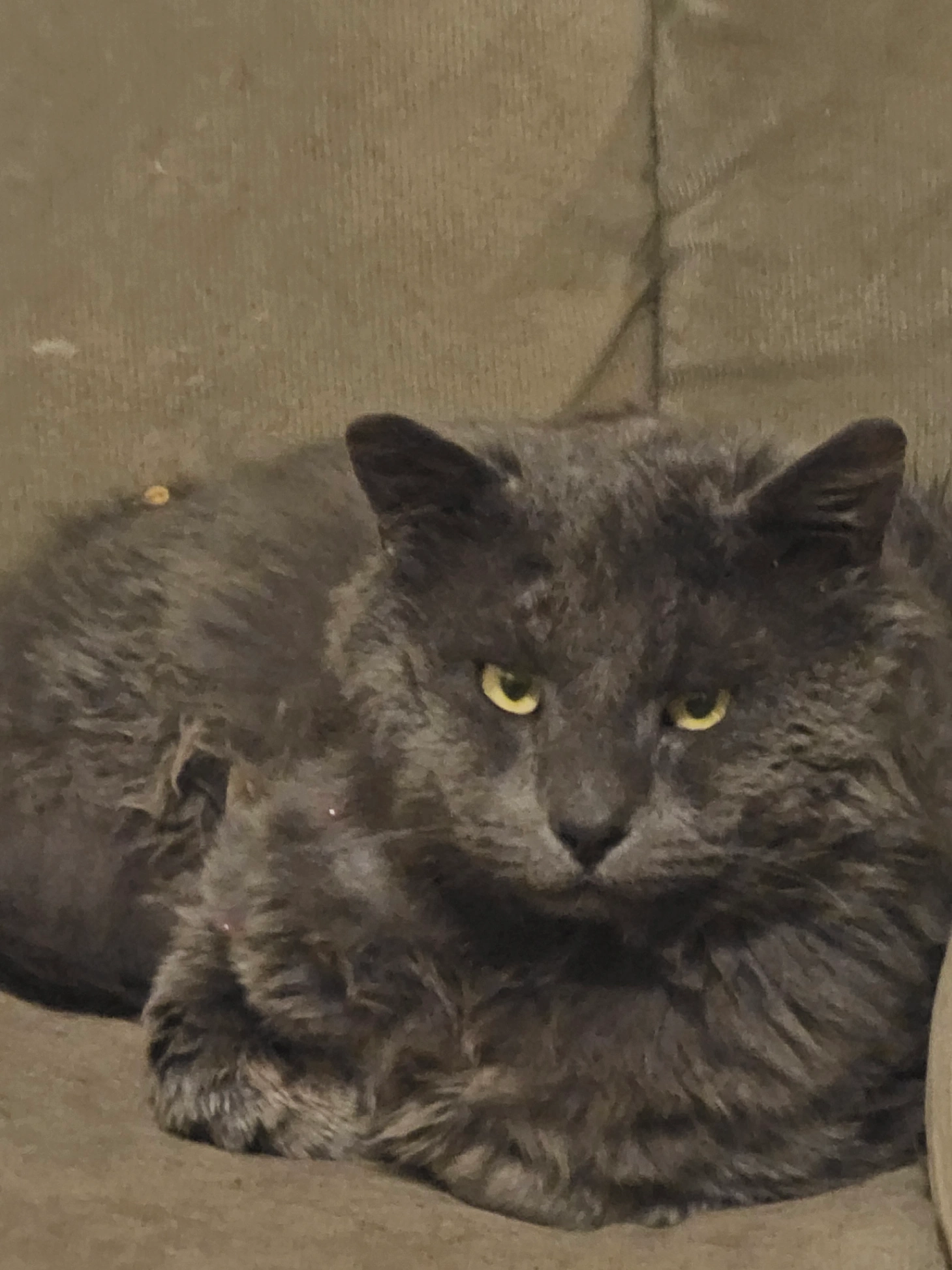 Fluffy grey and white. Microchipped. We food motivated.