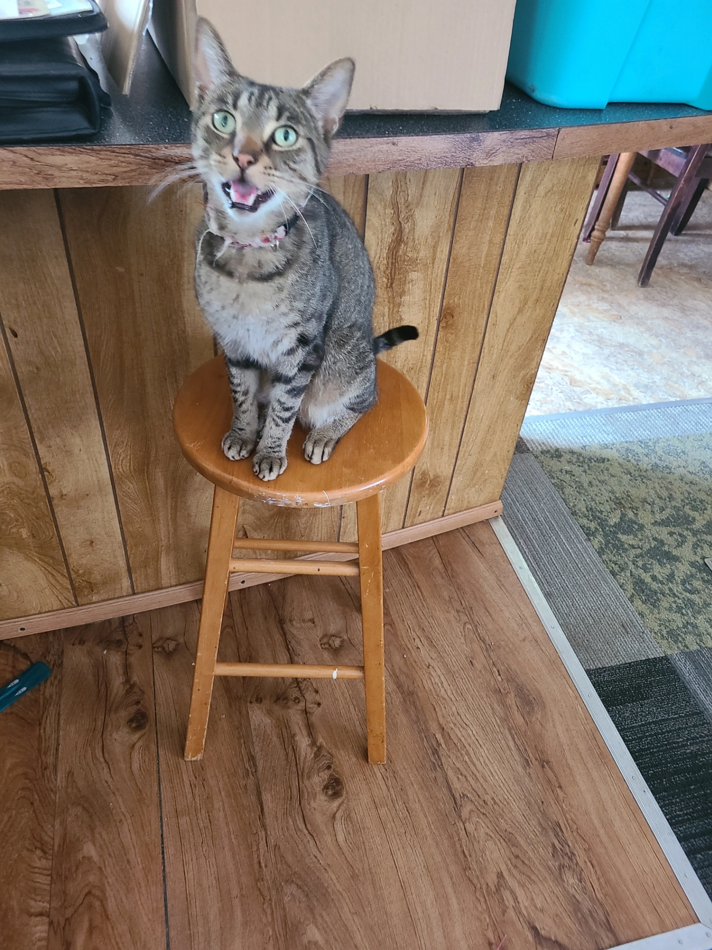 Neutered male. Last seen 4/11/26. Front left leg was recently shaved due to procedure. Meows and "talks" a lot.