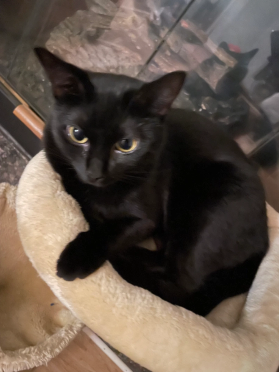 She is black with orange eyes, about 7lbs. She is microchipped and not fixed.