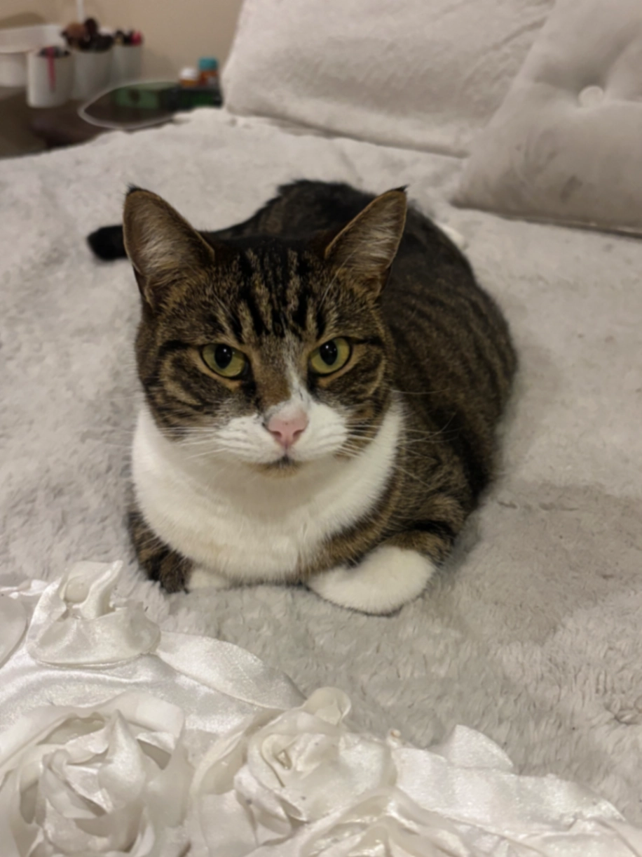 Got out of house she was in. Indoor/outdoor cat….very sweet.