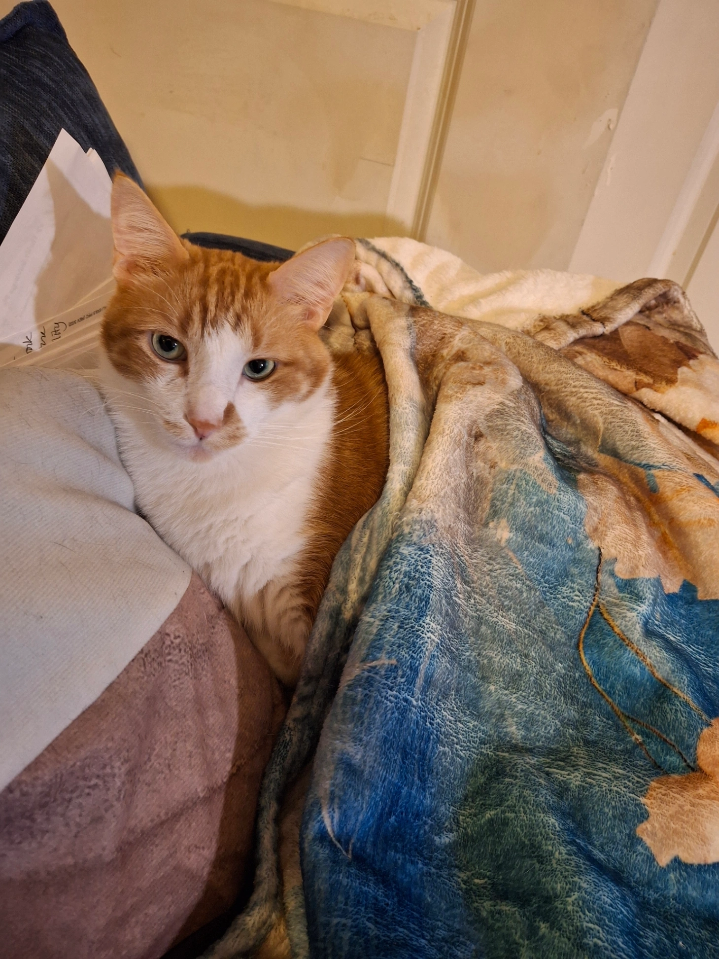 Last seen November 27th, 2025. He is not an outside cat he got out the door.☹️ Orange blonde/white tabby, he’s spotted as well as striped, lighter underneath on his belly area. Jasper is very talkative, sweet, curious, & friendly! Not neutered, nor chipped..