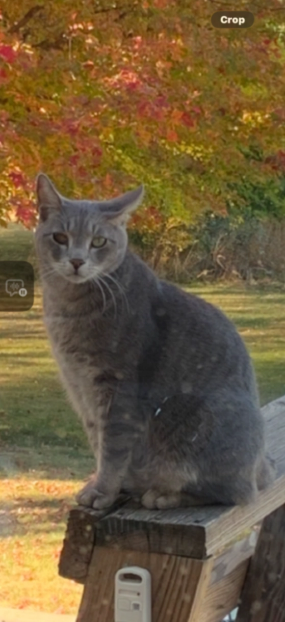 Buddy is a 7-year-old gray short-haired male, neutered and microchipped. He is very skittish and will likely run if approached, so please don’t try to catch him.