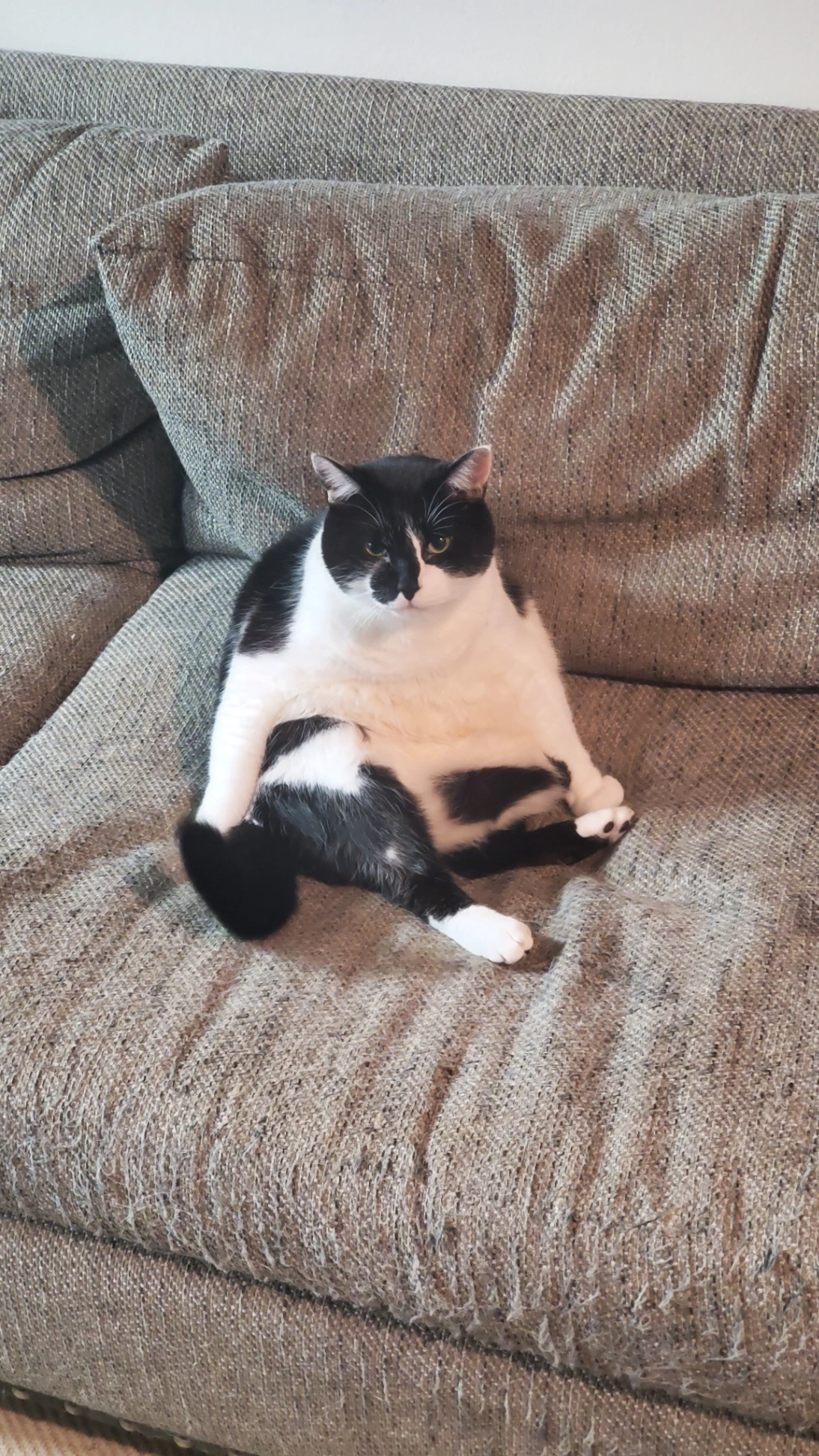15 lbs, so a bit chubby. Tuxedo American Shorthair