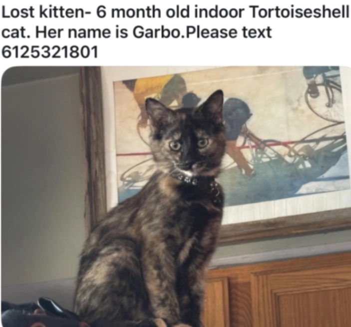 ZoeeReunited after3d, 14hThank you so much for this service. The information provided helped us not to lost our minds during the time our cat was lost!