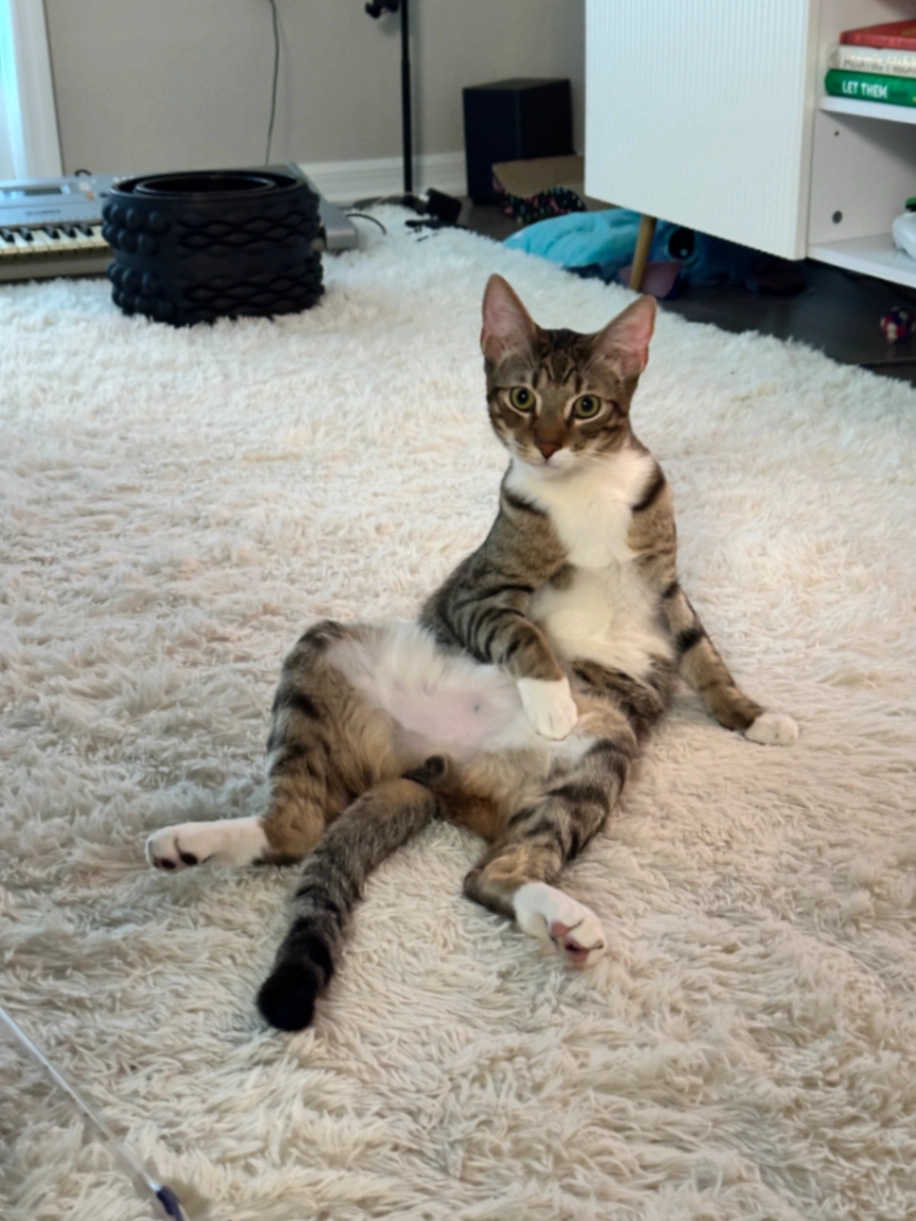 Male brown tabby, white chest, white paws