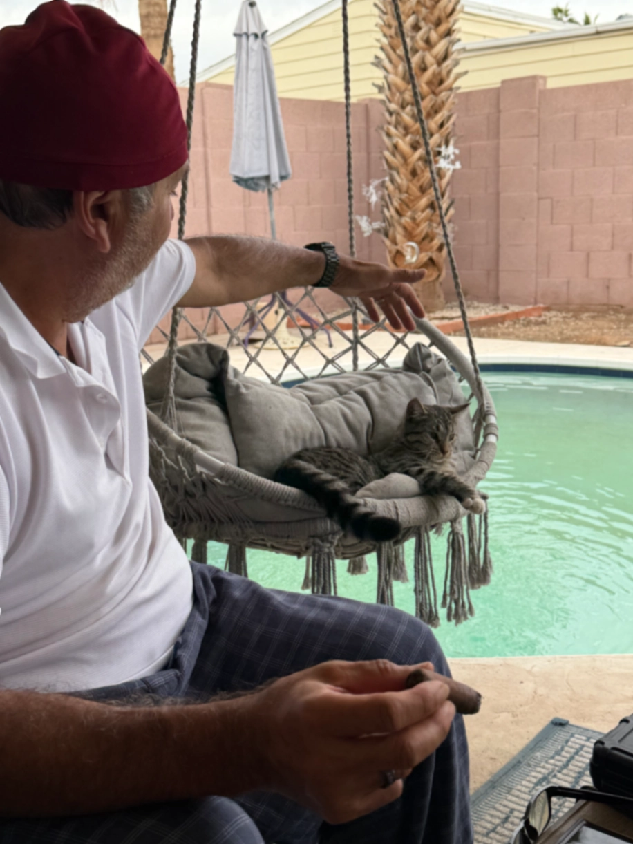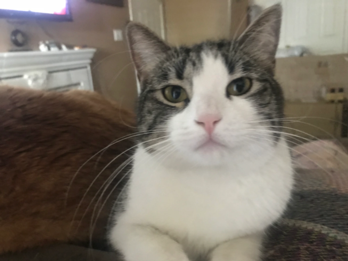 Very friendly and vocal. He’s 11 months old, he has some broken whiskers and only 1 testicle.