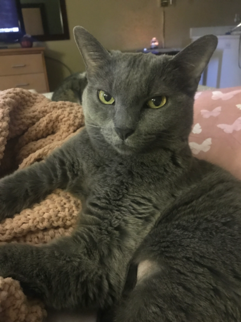 I had given up hope. So I deleted her photos. It was too painful. She’s a beautiful Russian blue. She’s mean. But she’s mine. She’s chipped to Nakomis parmely 602-617-0011. I will come and get her in a heartbeat.
