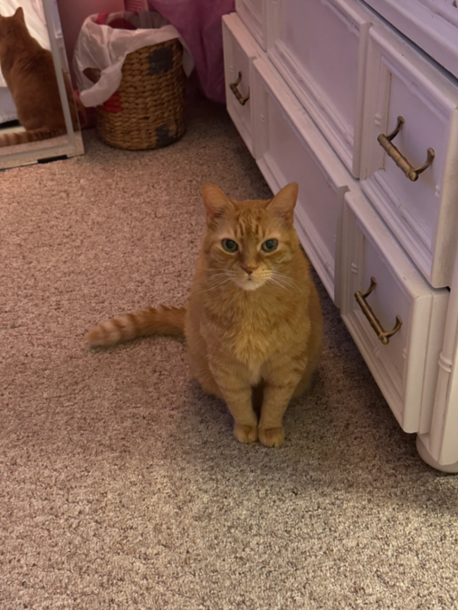 19yo orange tabby. He’s very scared and very cold. Most likely hiding if you live in the Salem Oaka neighborhood, please do us a favor and check your back yard for him. He could be under something or inside some kind of hole