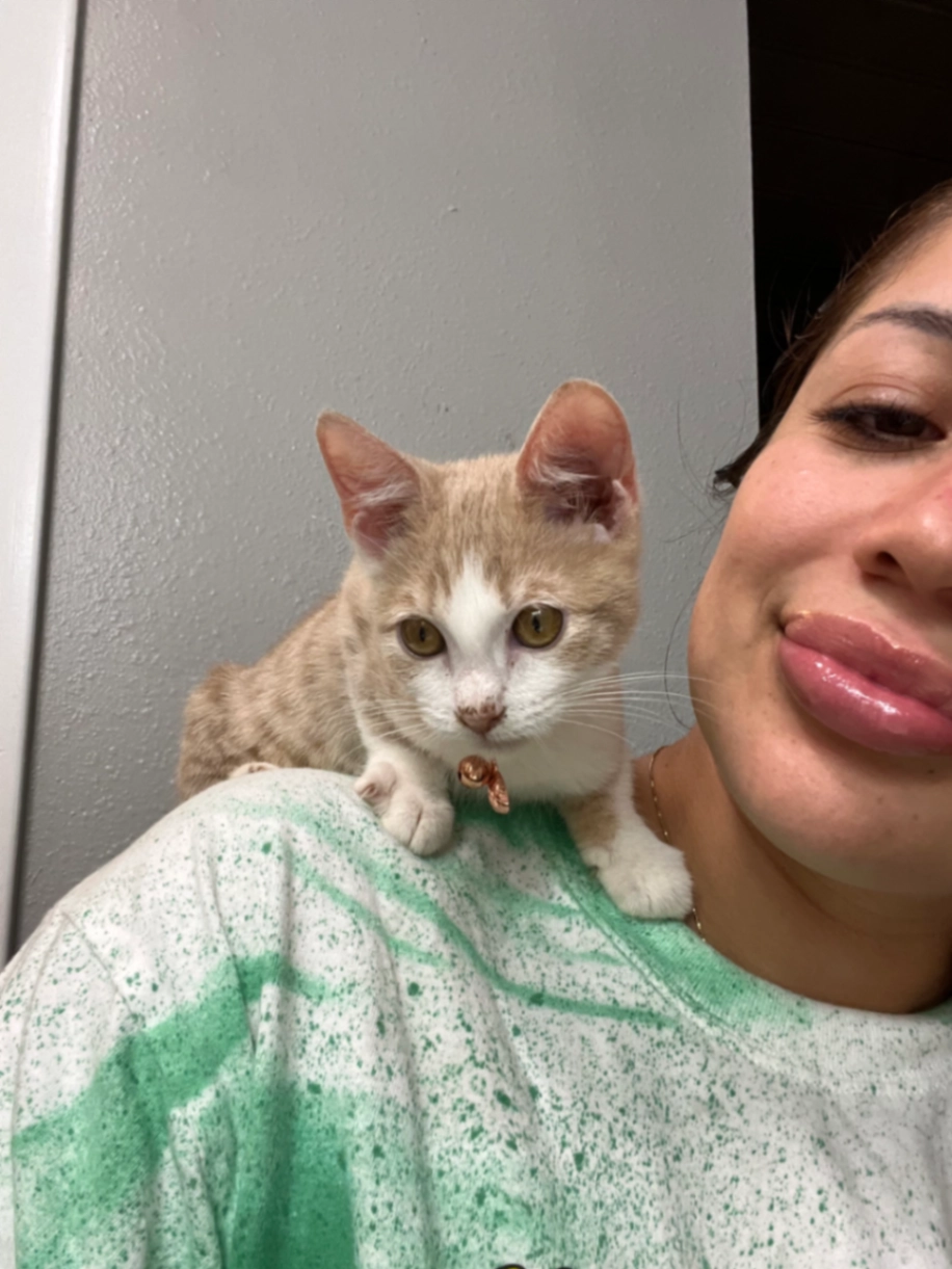 She is a 4 month kitten that loves treats and food! She is barely learning her name but she is very responsive and loves to play. Please help me find my baby :( $100 reward!