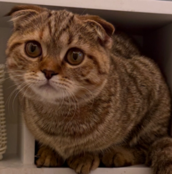We lost our cat Kiki she is a Scottish fold cat with folded ears and a small head with a striped tale. Shes friendly and lets anyone pick her up. Please please let us know if you have seen her or have her. Thank you 😊