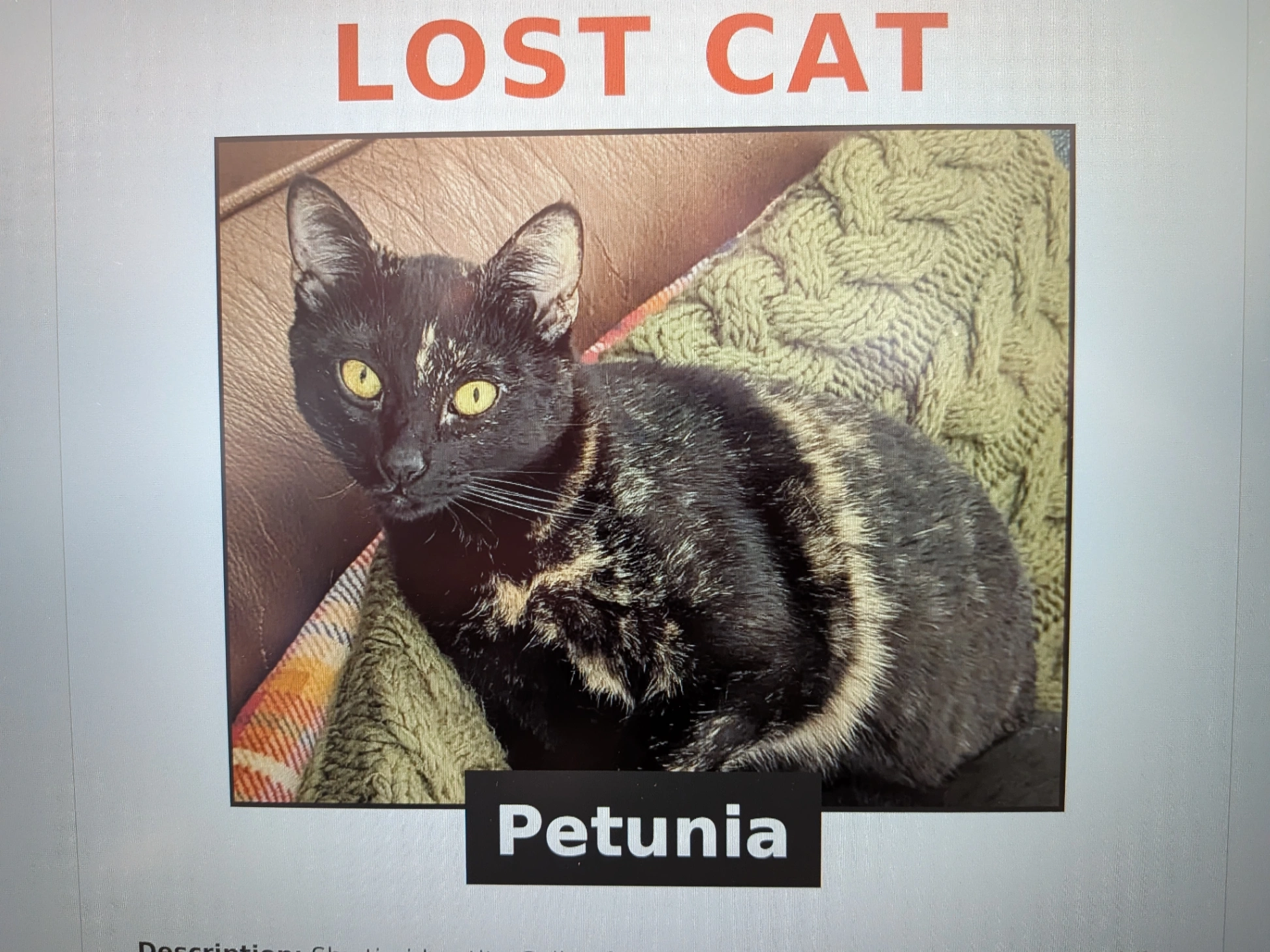 PercyReunited after3d, 8hWe have been so grateful for the overwhelming support from neighbors and so many other people we’ve never met. They sent information on how to entice him home, and we did EVERYTHING suggested. He’s home now and he’s the happiest cat to be home. Particularly valuable was the suggestion to set up a “home away from home” area as close as possible to the house and the door he left by (we used our kitchen porch) with food, water, and his familiar belongings, like his favorite bed and some of our dirty laundry for the scents. Looking for him at night with strong smelling food was the final piece of the puzzle. I put out deli chicken and he came when it got dark. I pushed the kitchen sliding door open. He RAN inside when he realized the door was open, and hasn’t been out since. Thank you everyone!! What a wonderful community you all are!!!!!