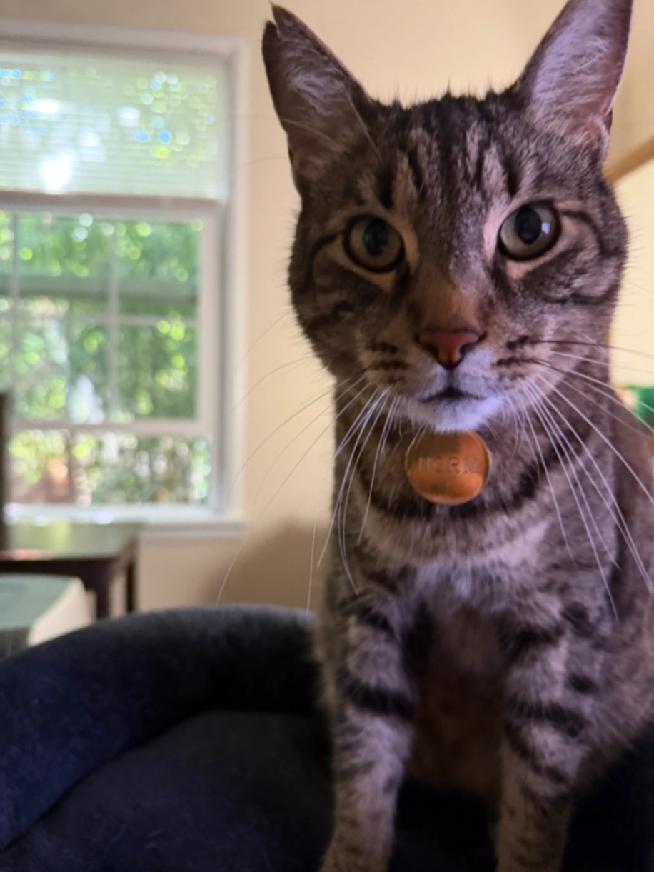 Brown male tabby. Very vocal