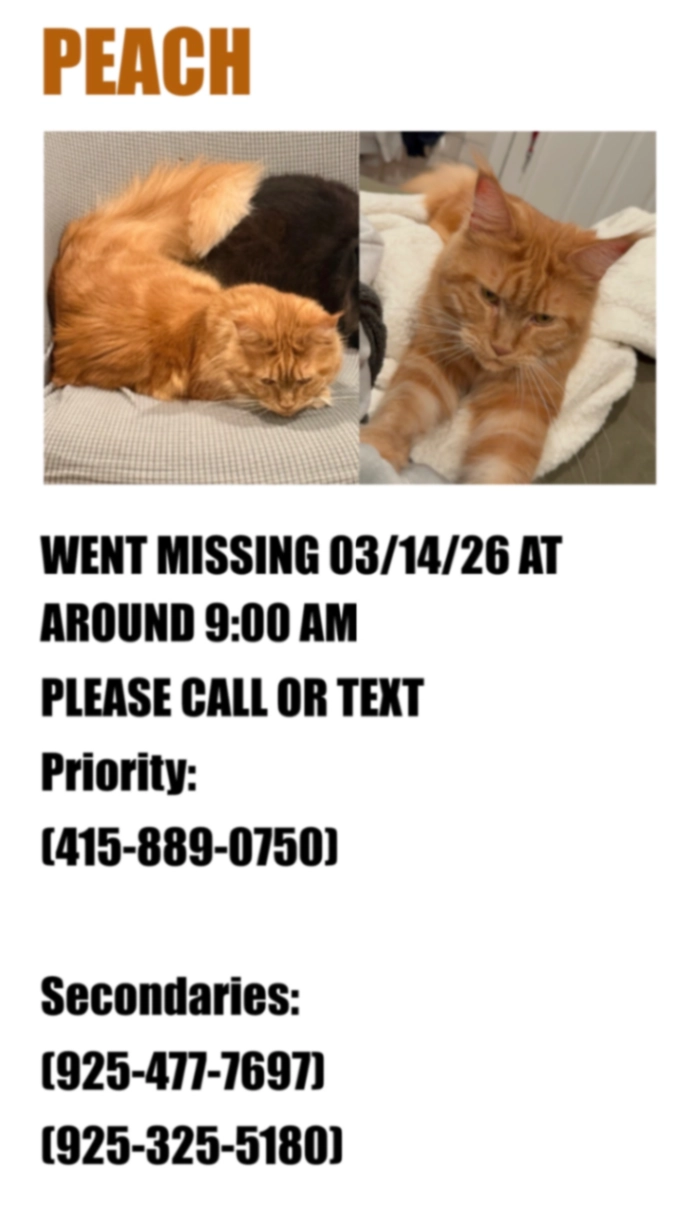 PercyReunited after3d, 8hWe have been so grateful for the overwhelming support from neighbors and so many other people we’ve never met. They sent information on how to entice him home, and we did EVERYTHING suggested. He’s home now and he’s the happiest cat to be home. Particularly valuable was the suggestion to set up a “home away from home” area as close as possible to the house and the door he left by (we used our kitchen porch) with food, water, and his familiar belongings, like his favorite bed and some of our dirty laundry for the scents. Looking for him at night with strong smelling food was the final piece of the puzzle. I put out deli chicken and he came when it got dark. I pushed the kitchen sliding door open. He RAN inside when he realized the door was open, and hasn’t been out since. Thank you everyone!! What a wonderful community you all are!!!!!