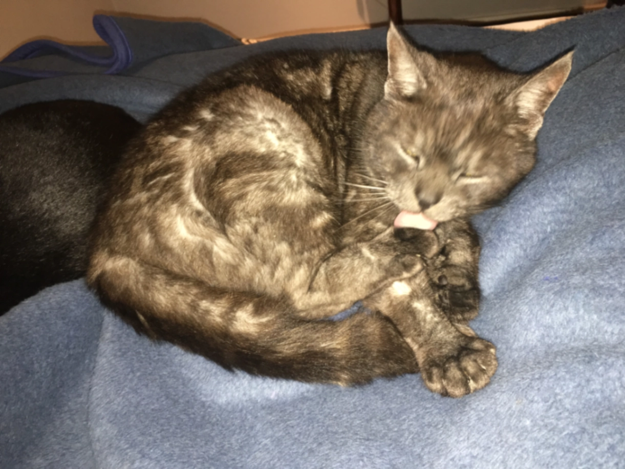 She is a quiet cat who is very shy. She loves to come and rub herself on my legs. The only time she makes any noise is when she is bringing us a present. It’s unlike her to be out of the house for so long! She is a him girl and we all miss her, especially her kitty sister!