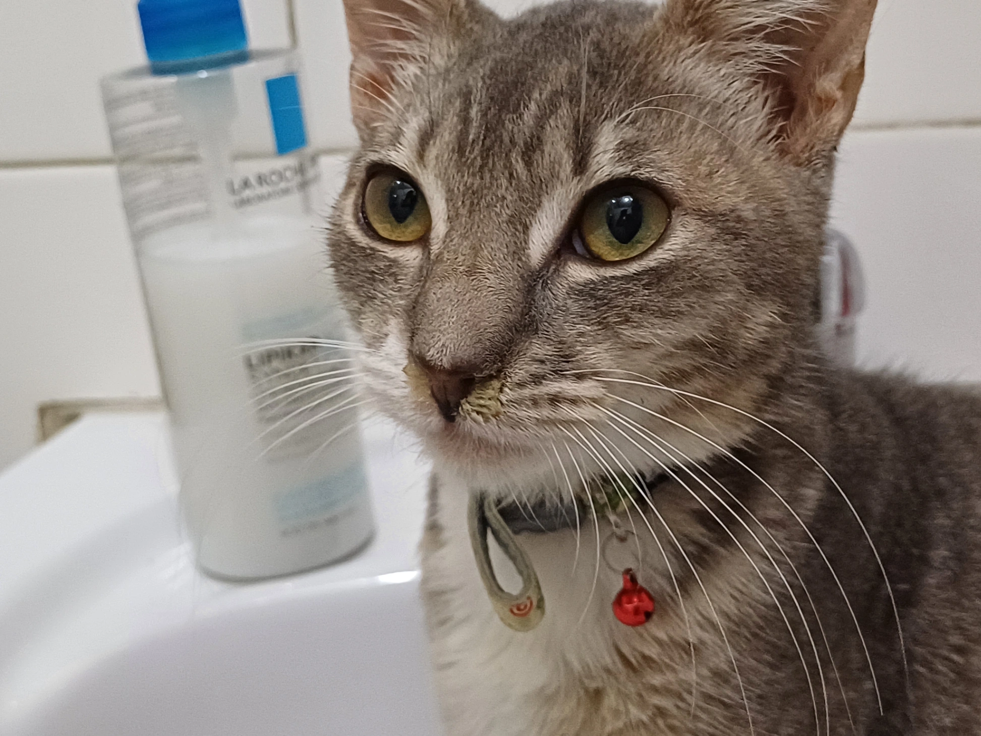 He is very fast and is still a baby. He is Gray with slight hints of brown and wearing a collar with a little bell on it
