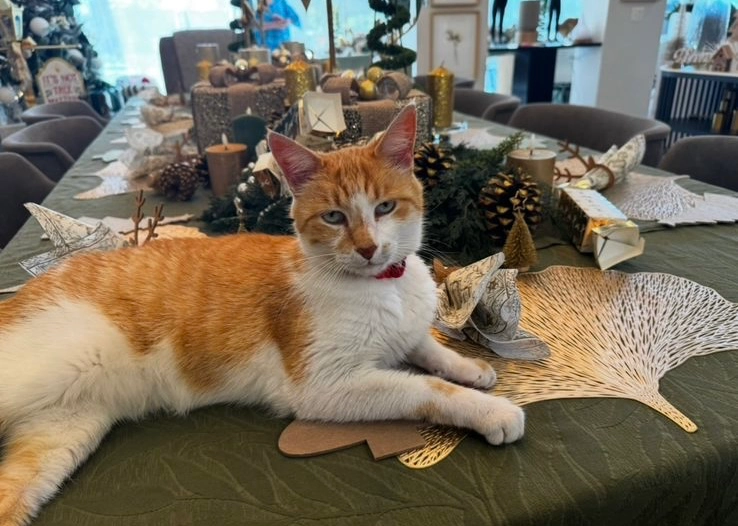 White and Ginger Boy. Red Collar.