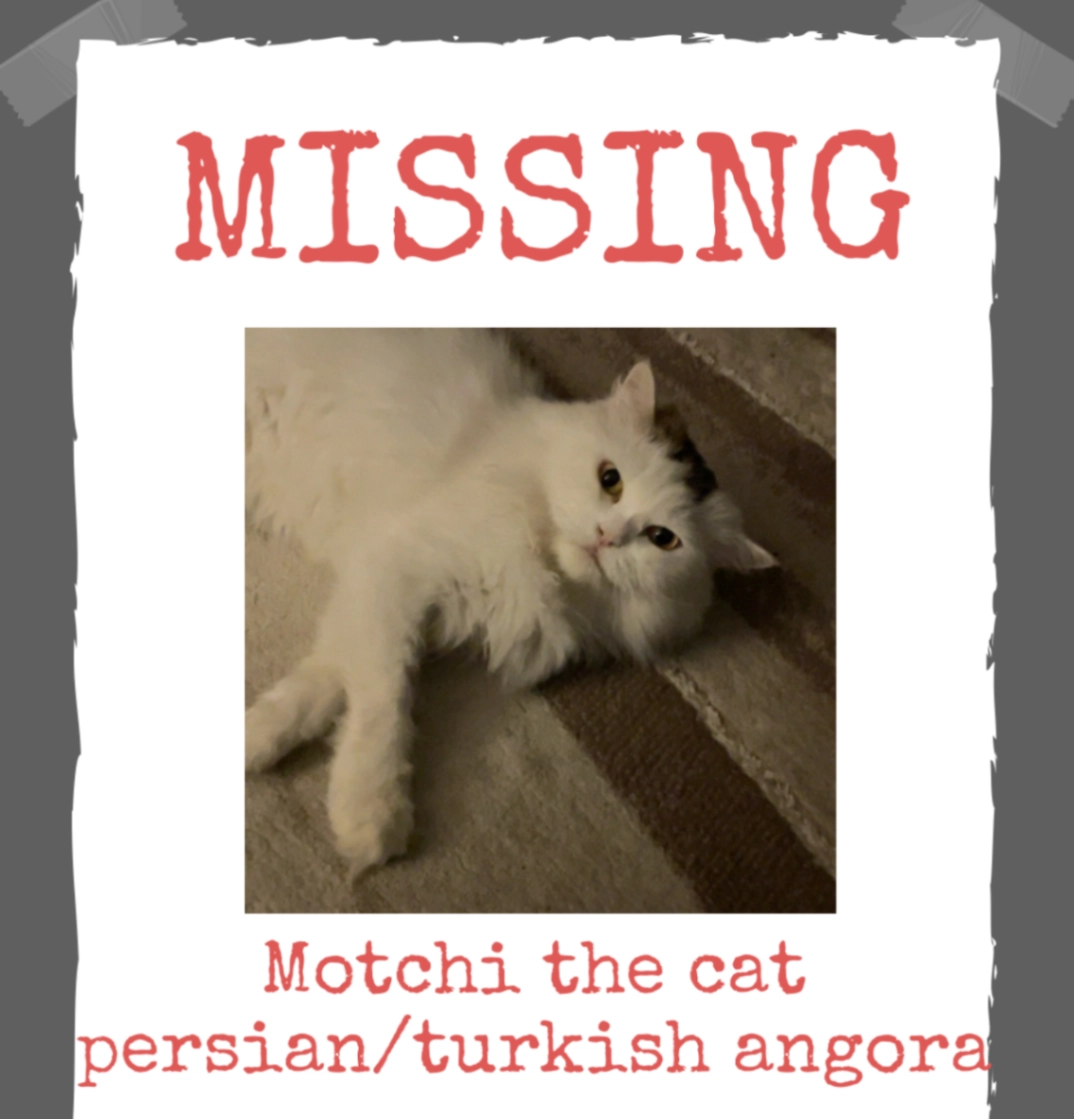 He is a neutered male cat, with pretty gold eyes and white black fur. PLEASE help me find my baby!!!