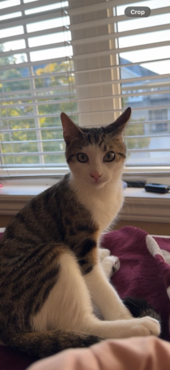 This is jiji he hasnt been home since yesterday morning he was wearing a lepord print collar he has a long white hair on his chin hes 9 months old frendly but gets scared easily he has not been chipped or nuetred