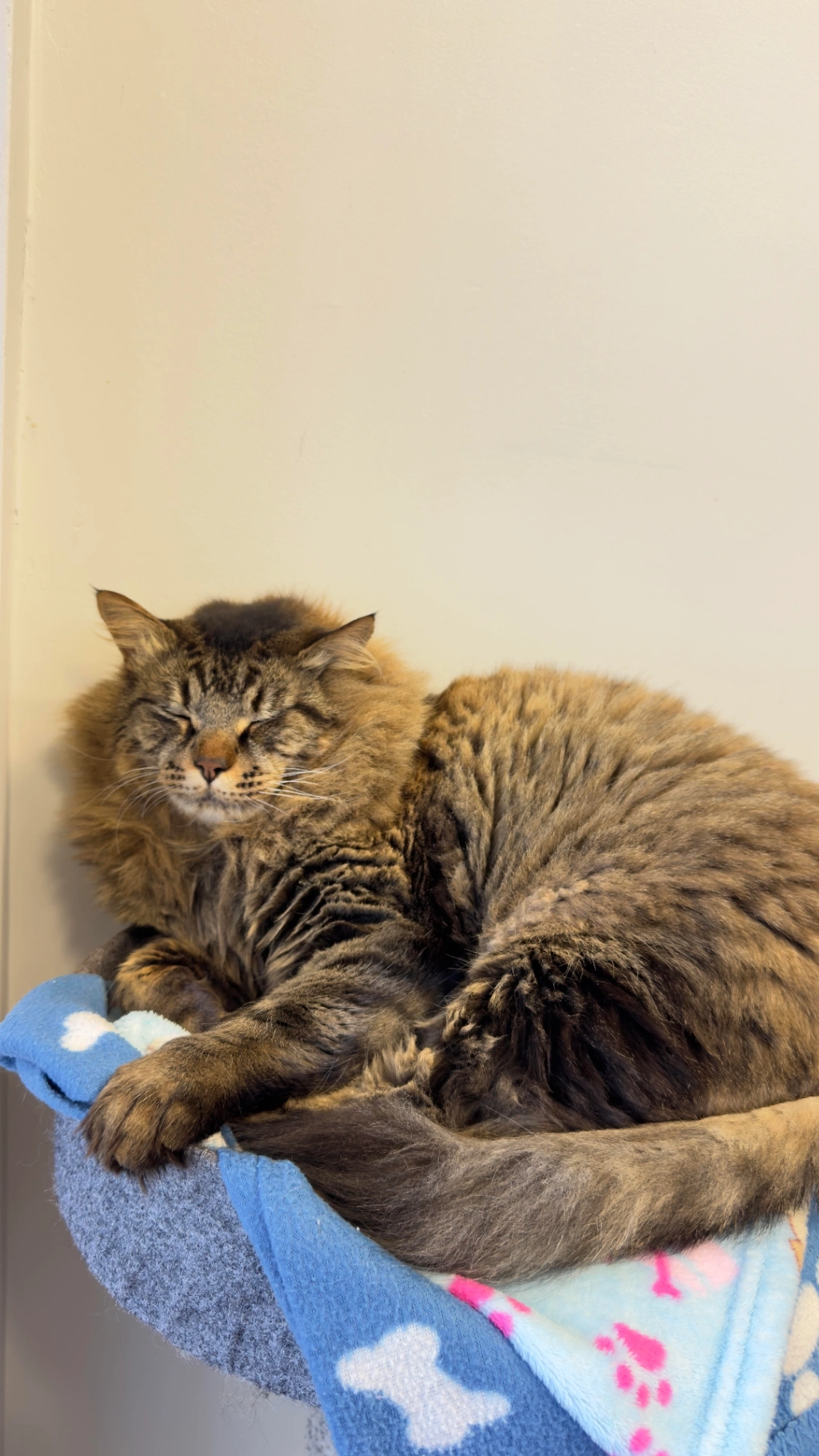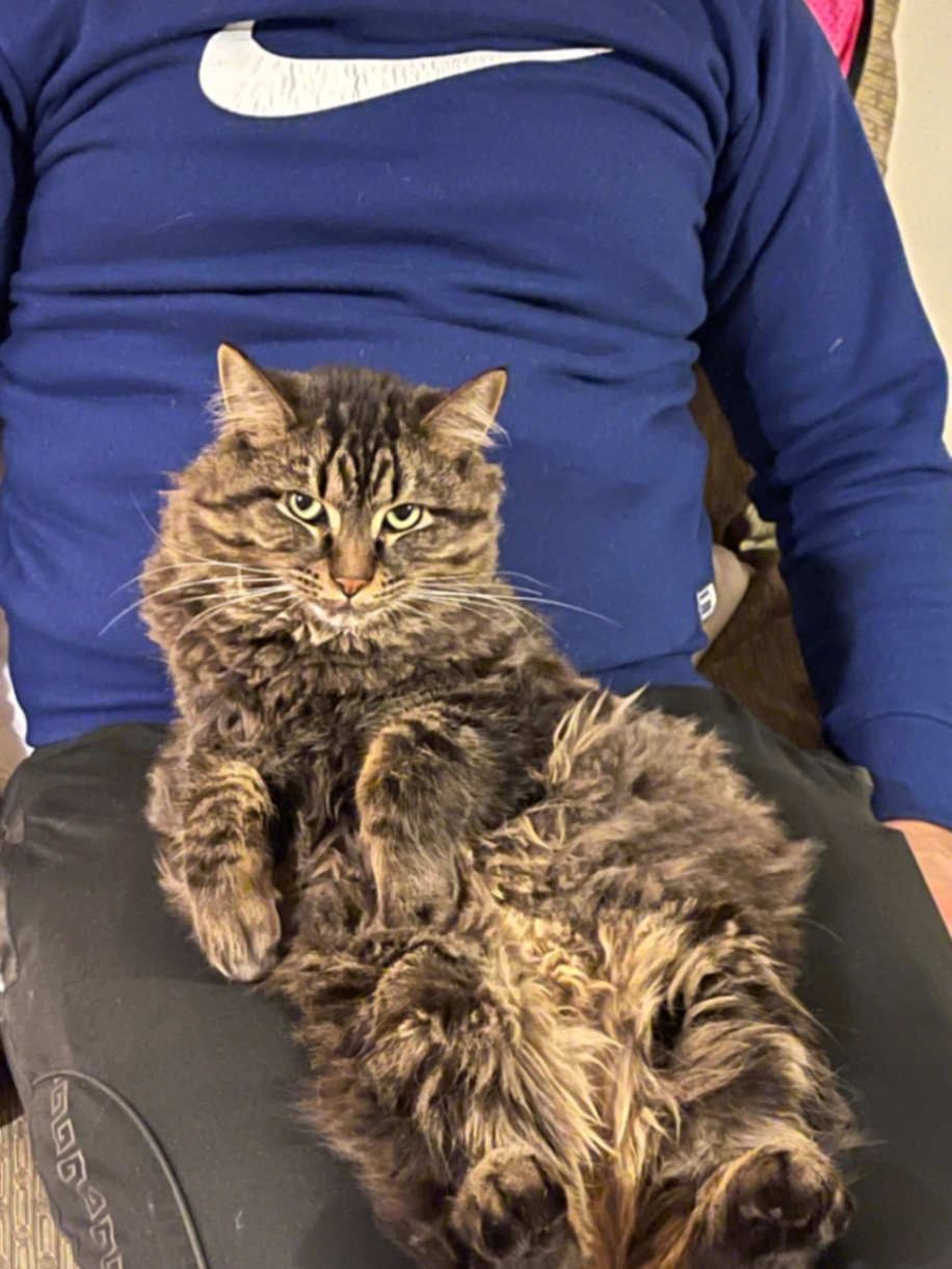 He’s little big and little healthy cat. He’s a maine coon. He’s older 8 years old male cat