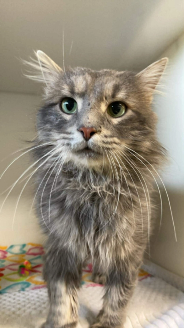 Plumeau à 1 an 1/2; d’un gris unis à poil long