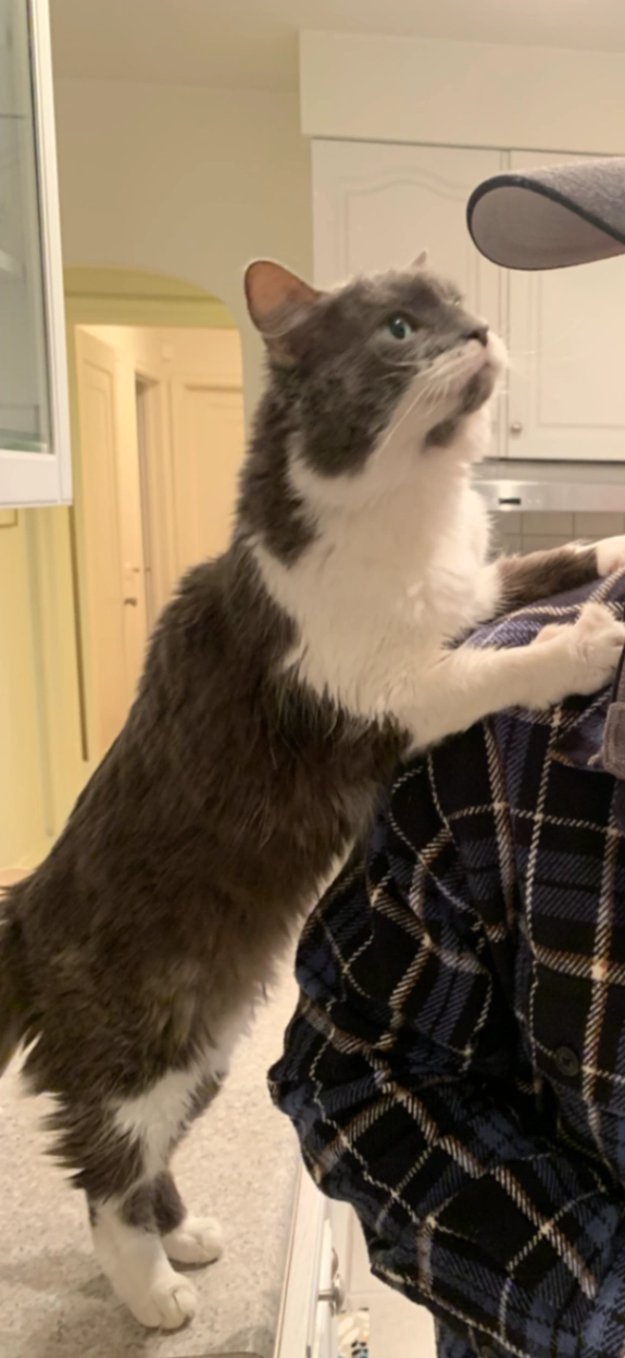 Grey and white tuxedo cat, green eyes, no collar. 12 years old and about 6lbs, very small and use to being indoors. Escaped last on the 5th of march. If you find this cat please reach out.
