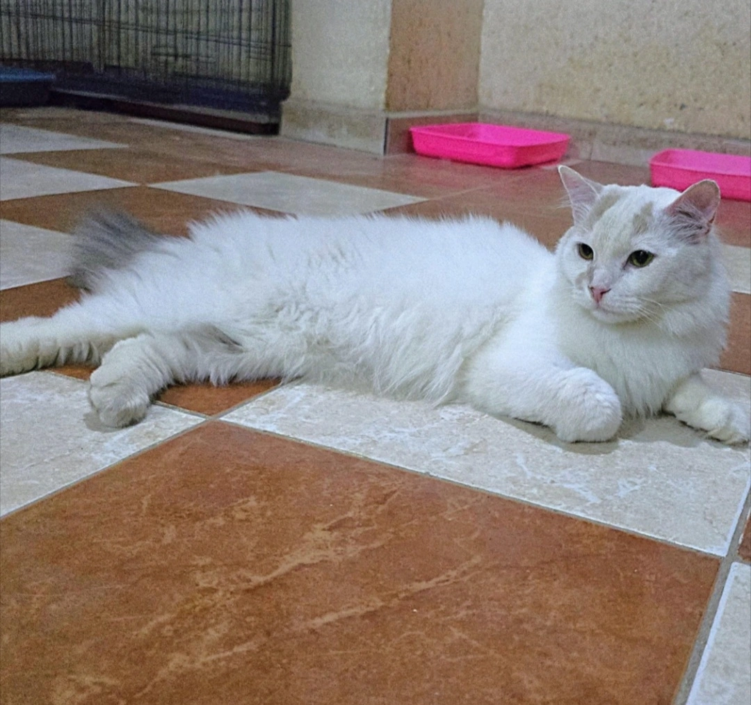 Friendly, ginger & white coat, male.