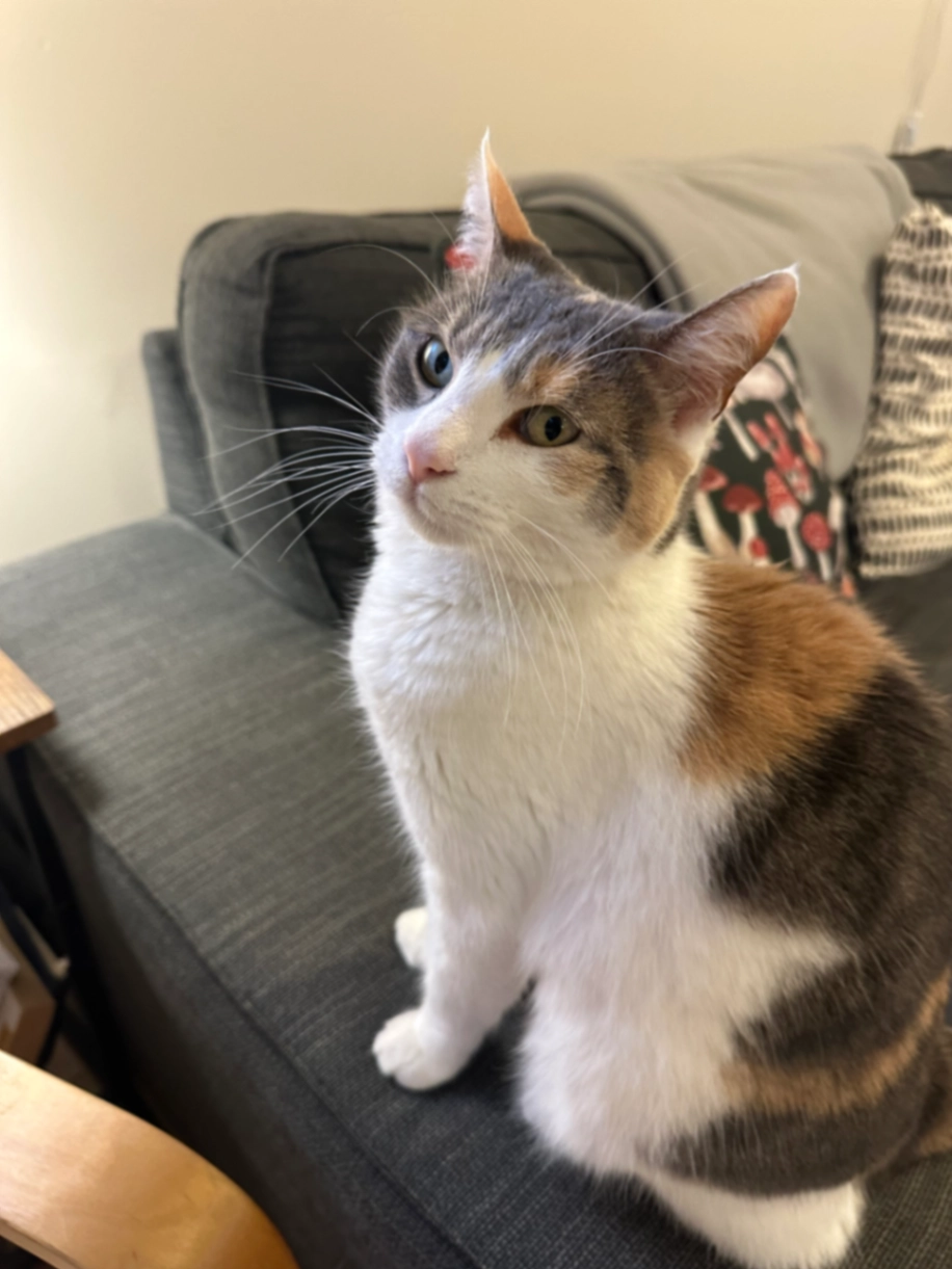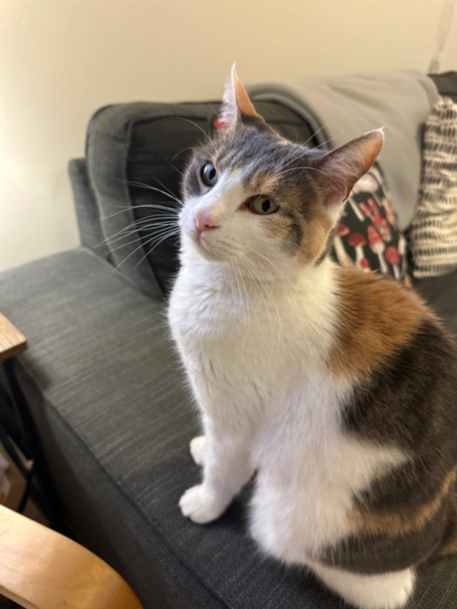 Our beloved cat Uzum is missing. She has three colors β mostly white, with brown/orange and gray patches.